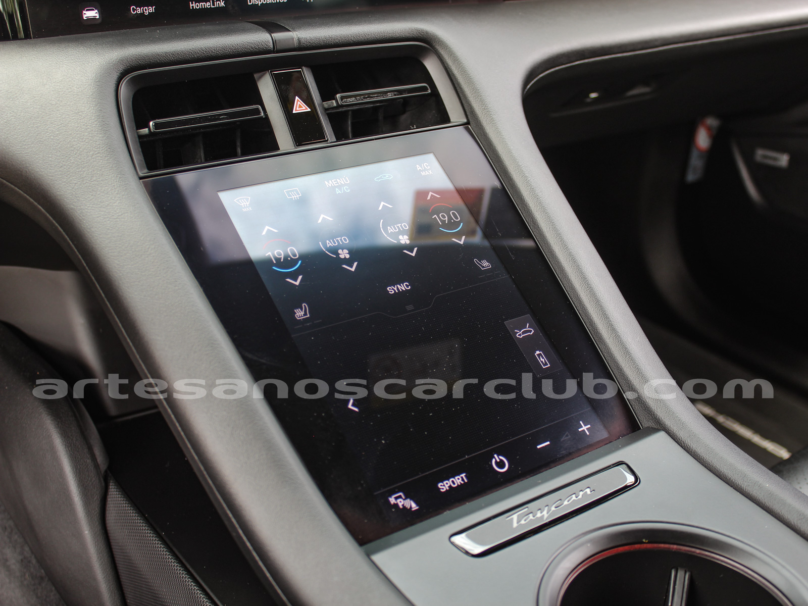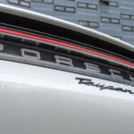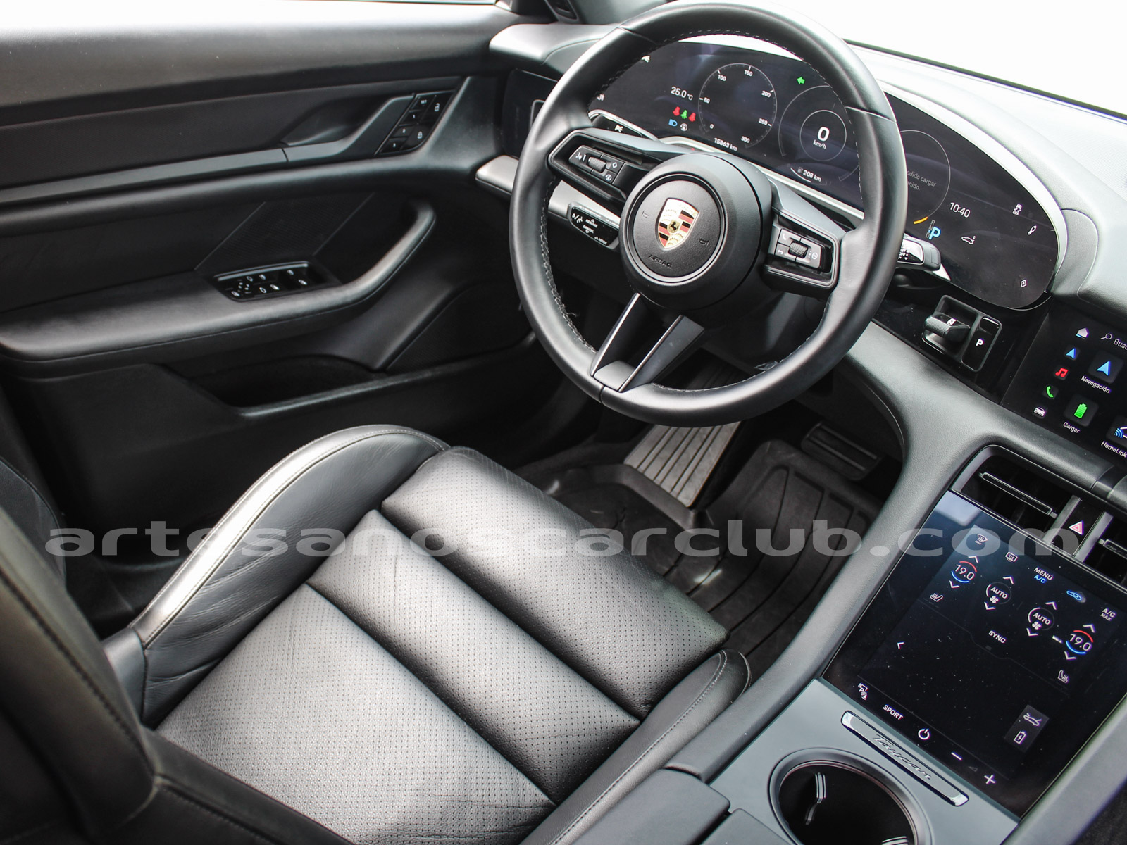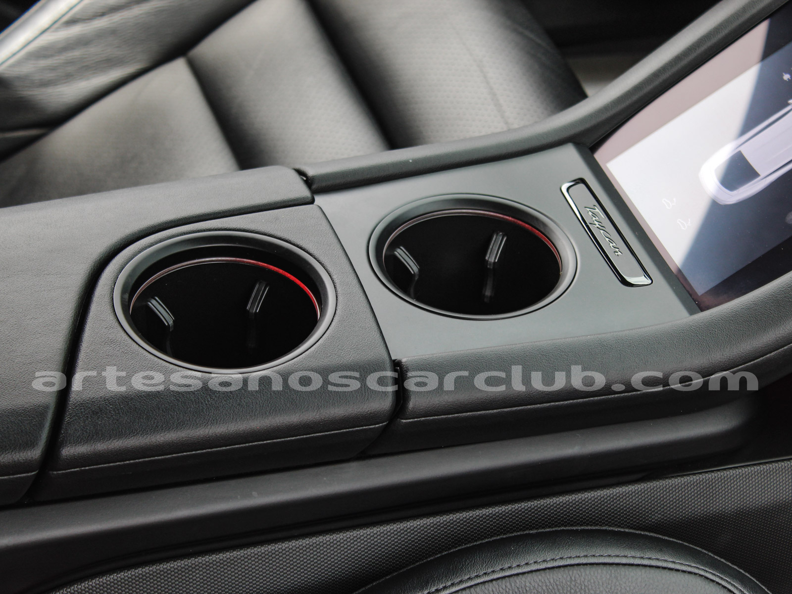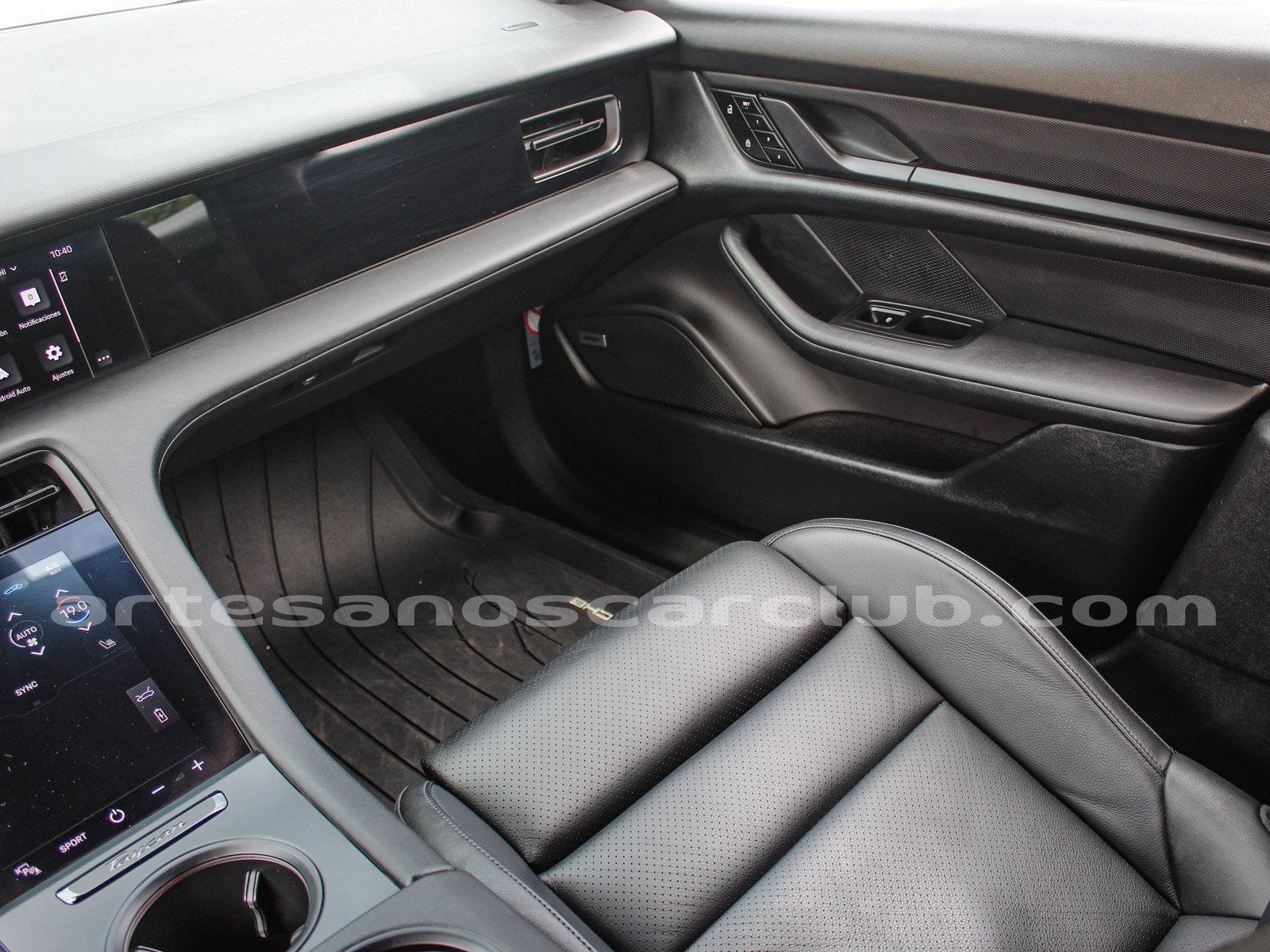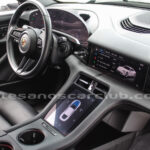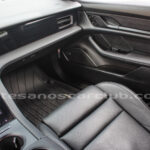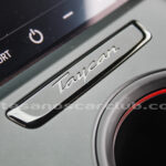 • Moldura de ingreso a cabina en plástico negro con inscripción «Taycan».