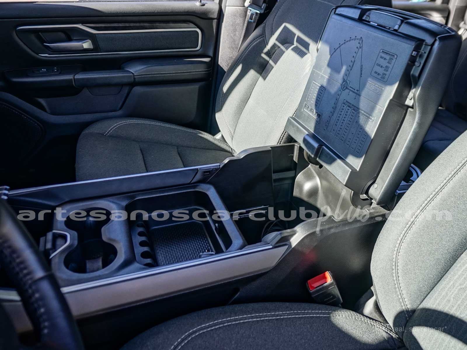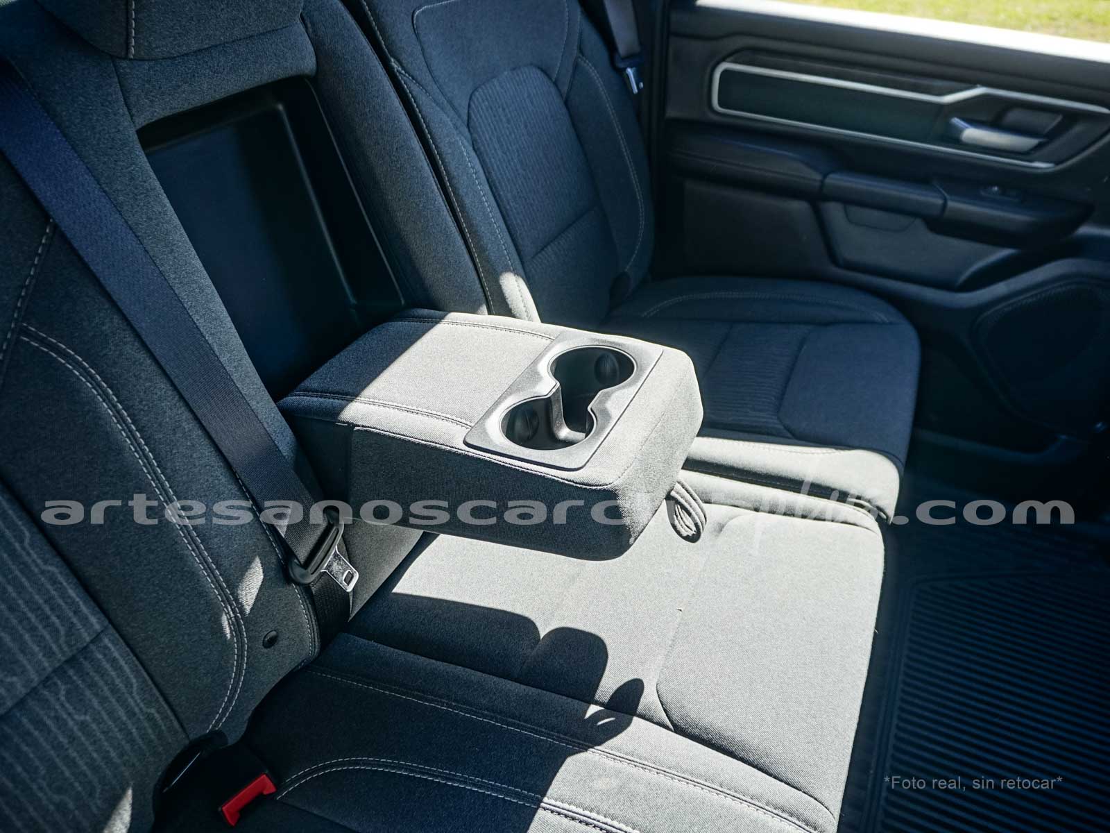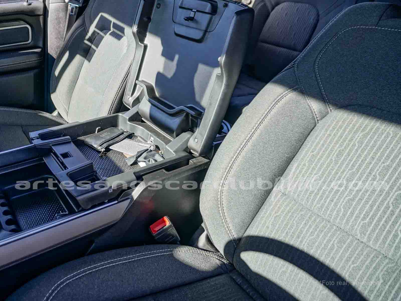 Apoyabrazos delantero con bodega y tapa.