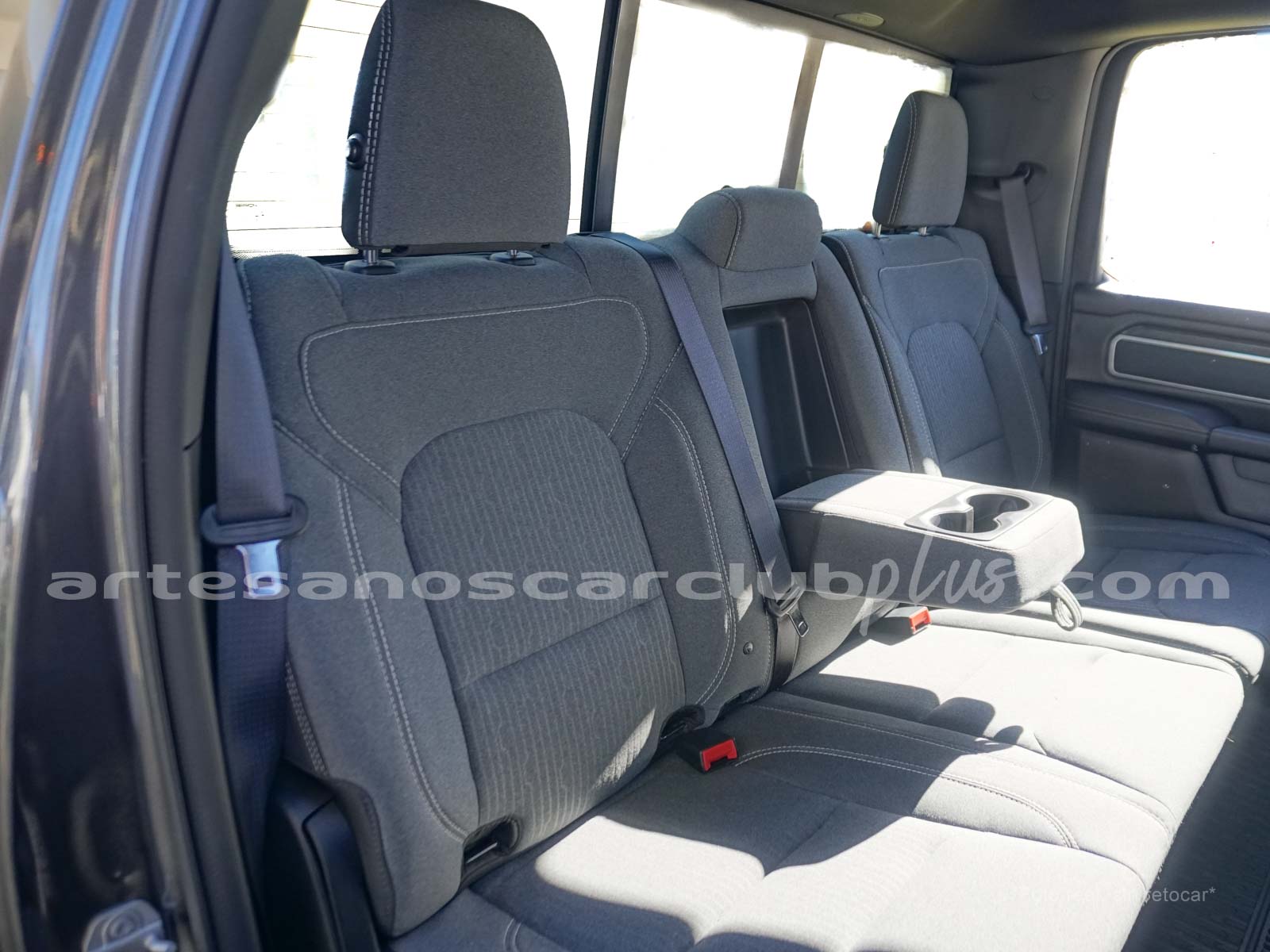 Apoyabrazos trasero abatible con posavasos integrados.