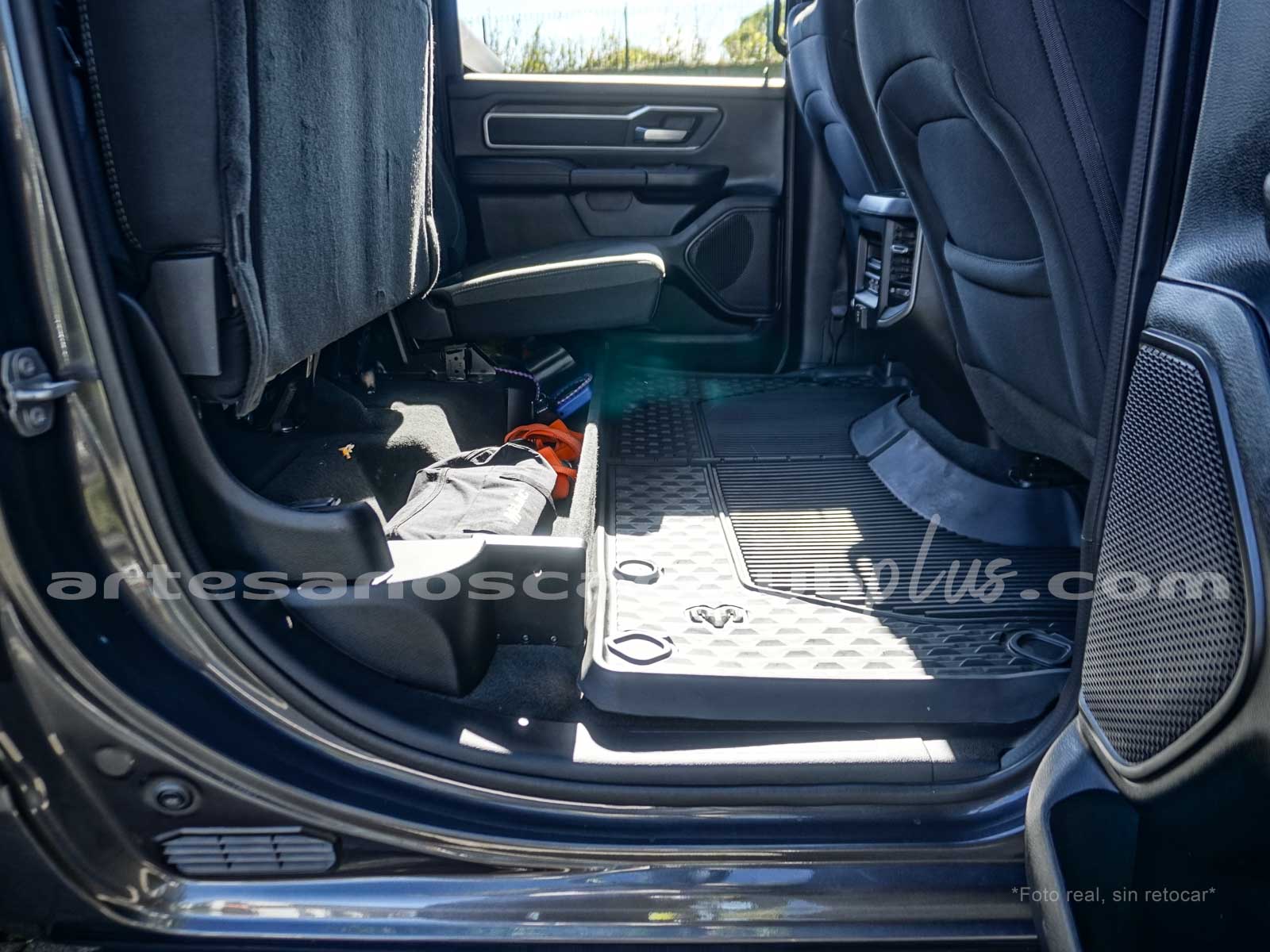 Bodega y cama debajo de 2da fila de asientos con iluminación.