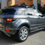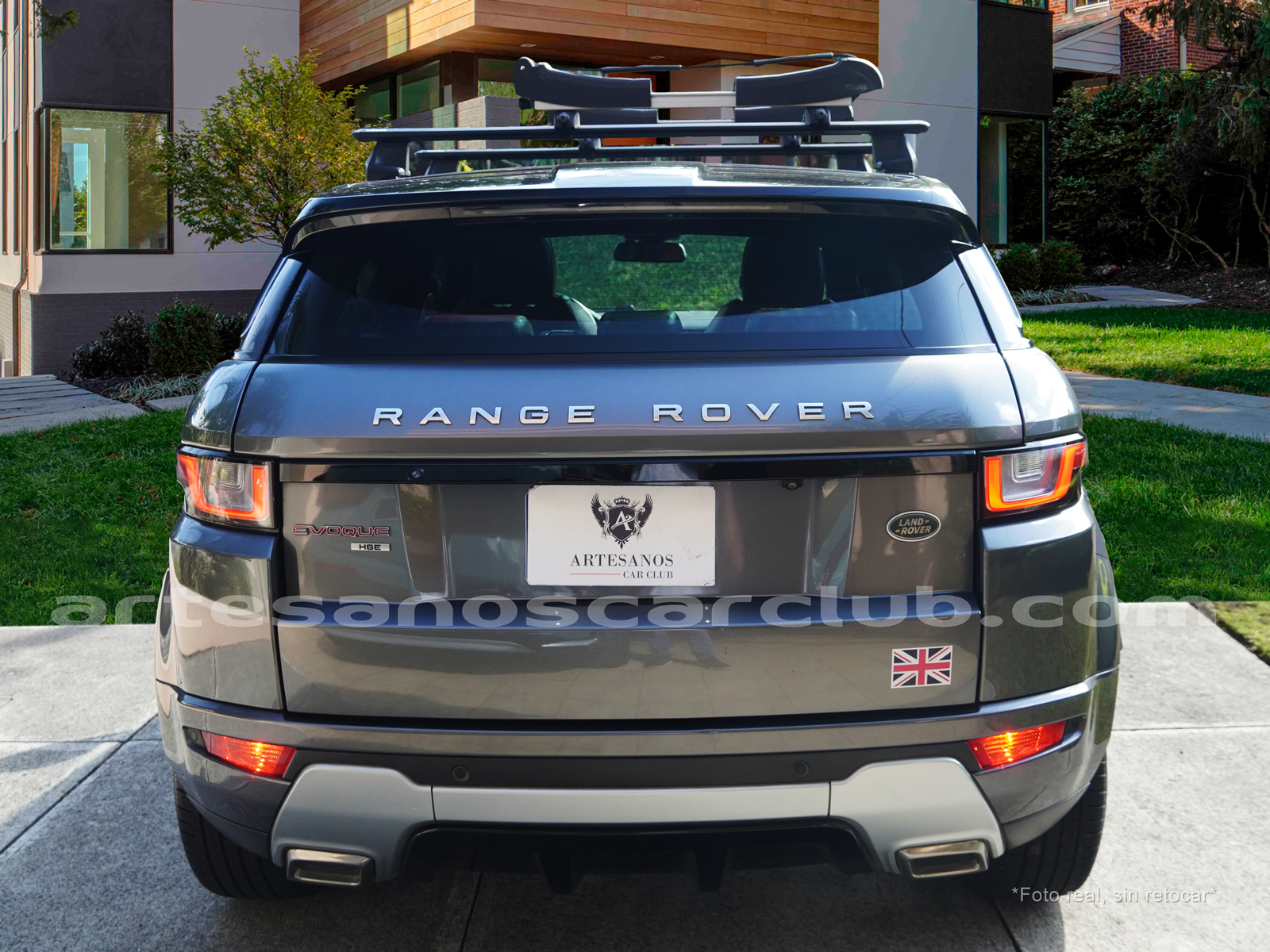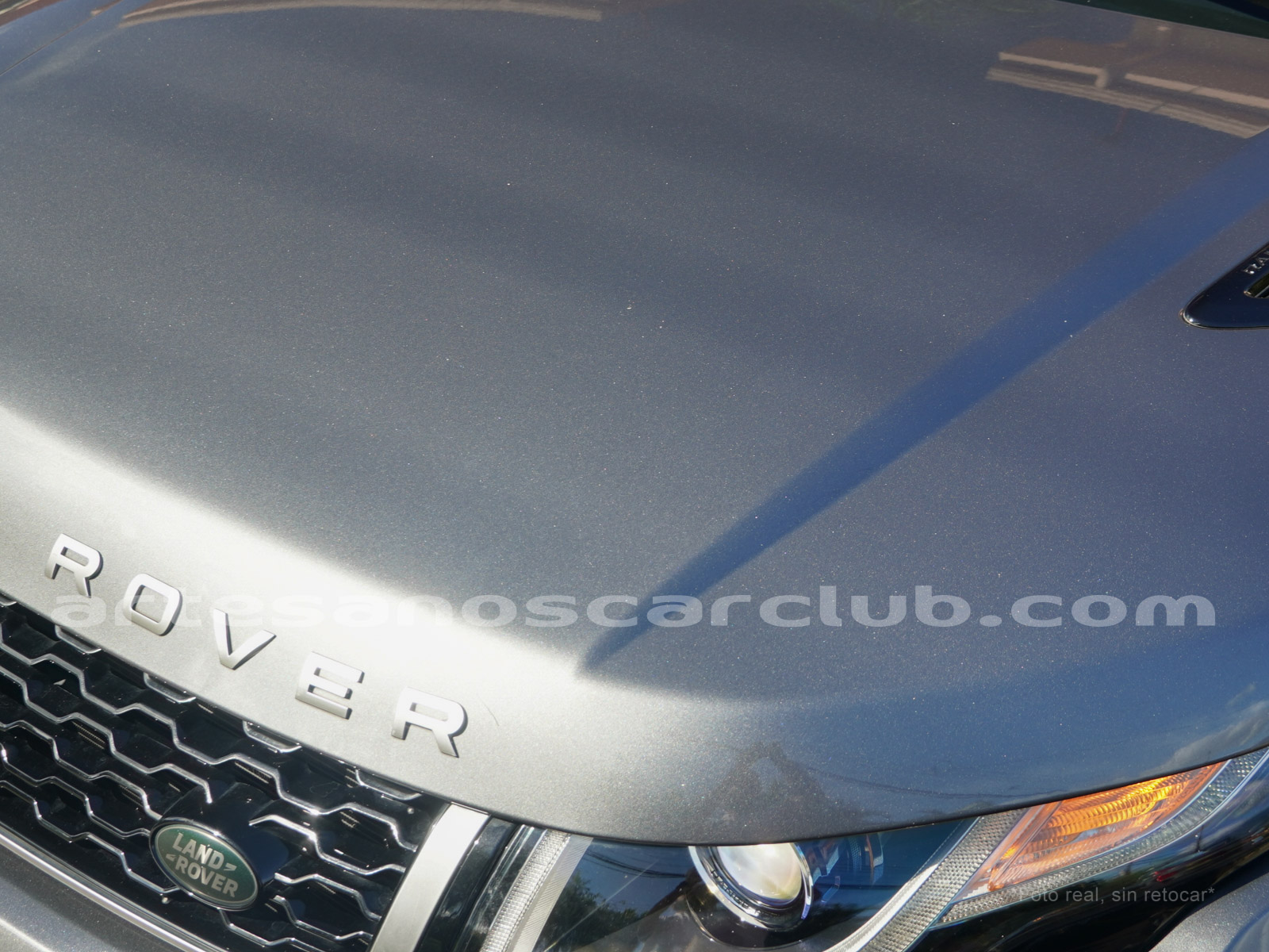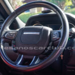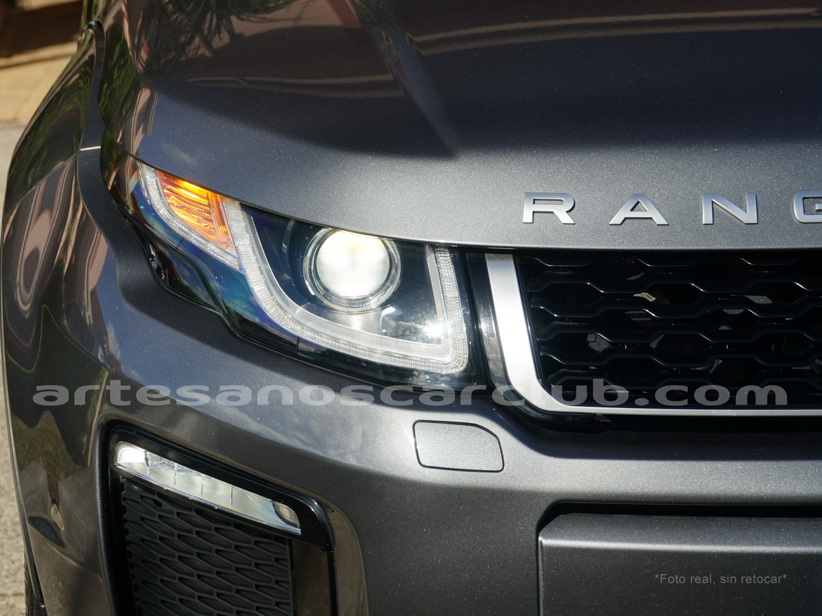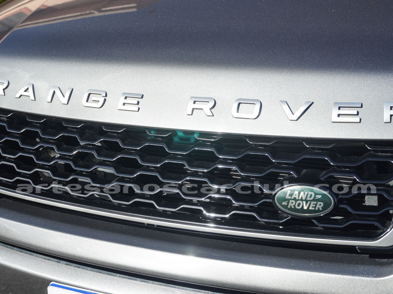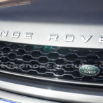 Moldura exterior trasera en negro brillante con inscripción RANGE ROVER en plata.