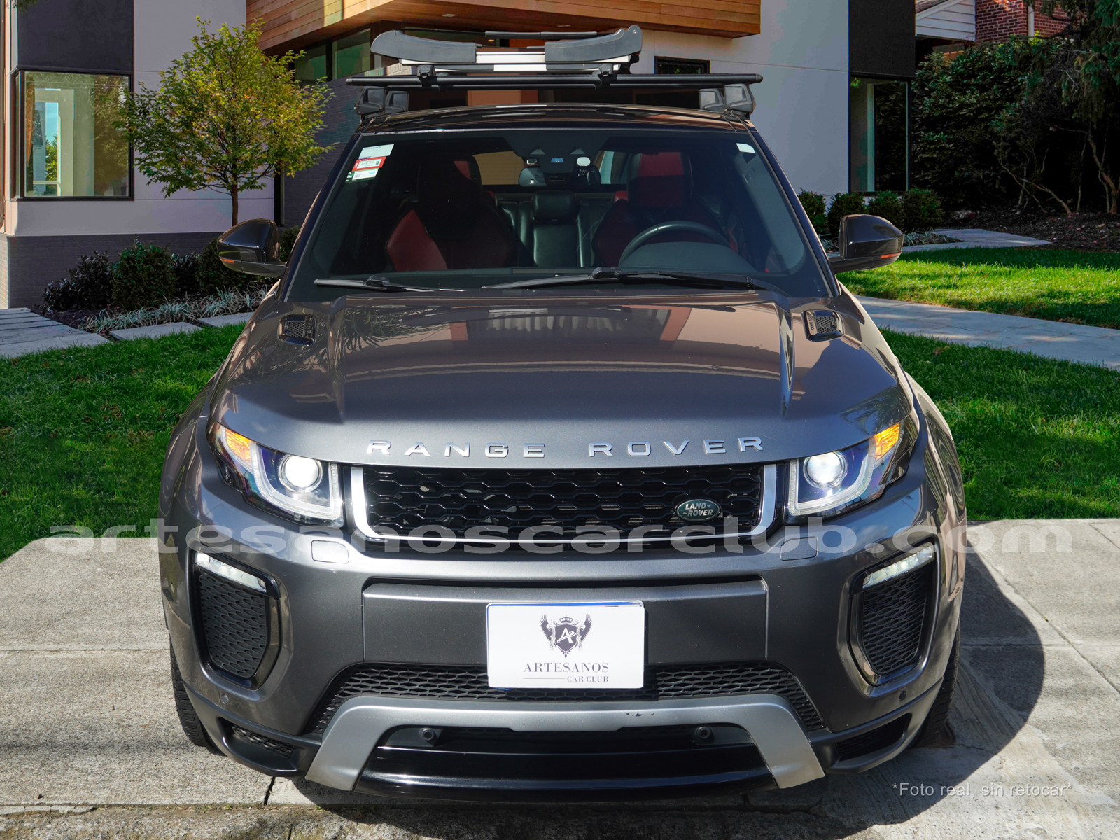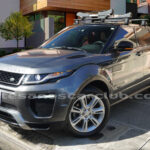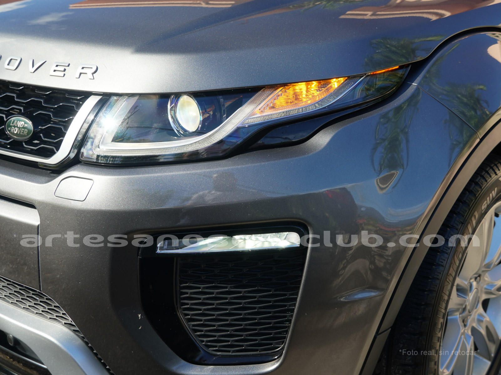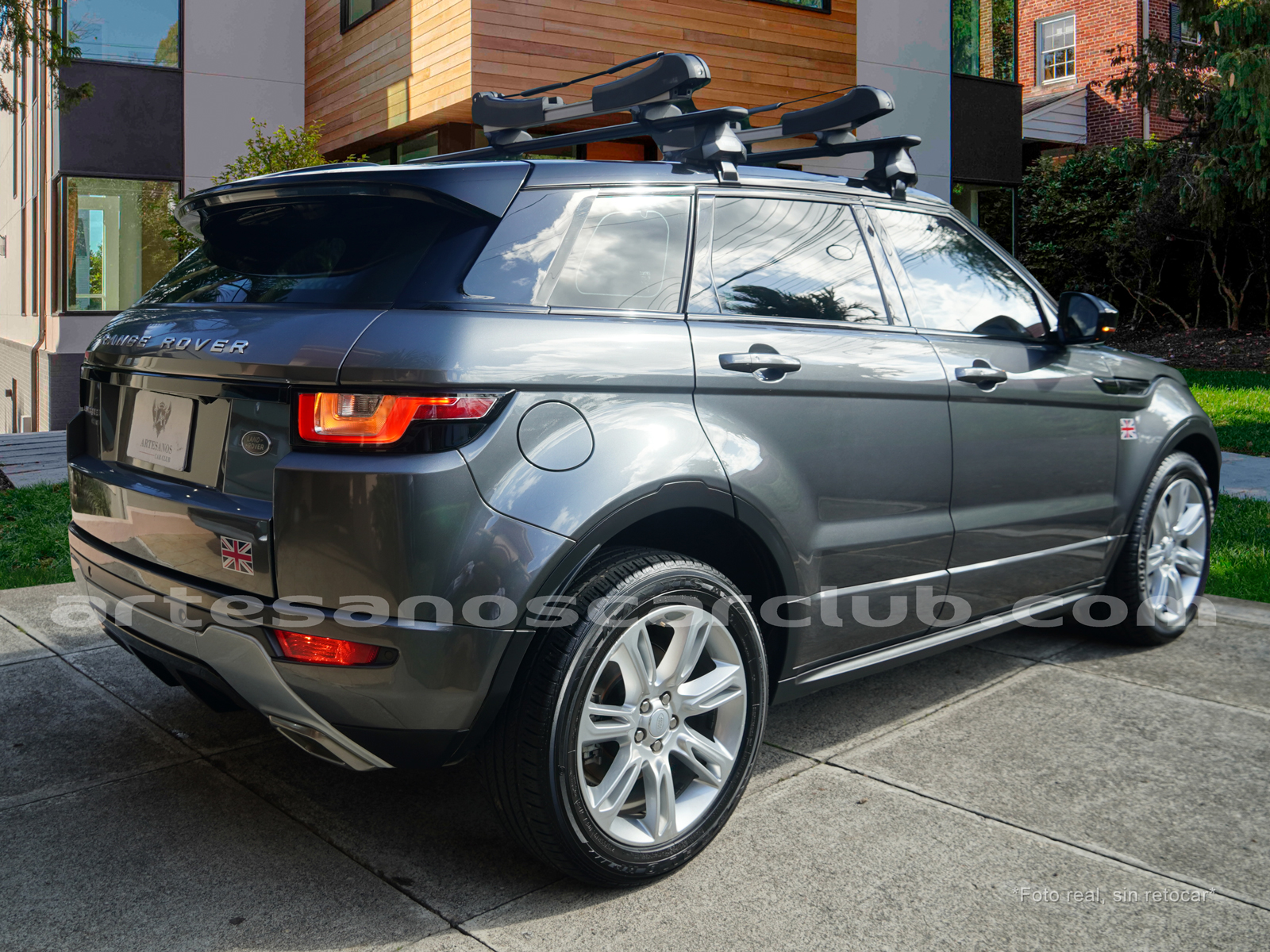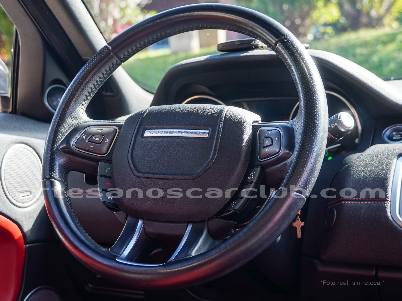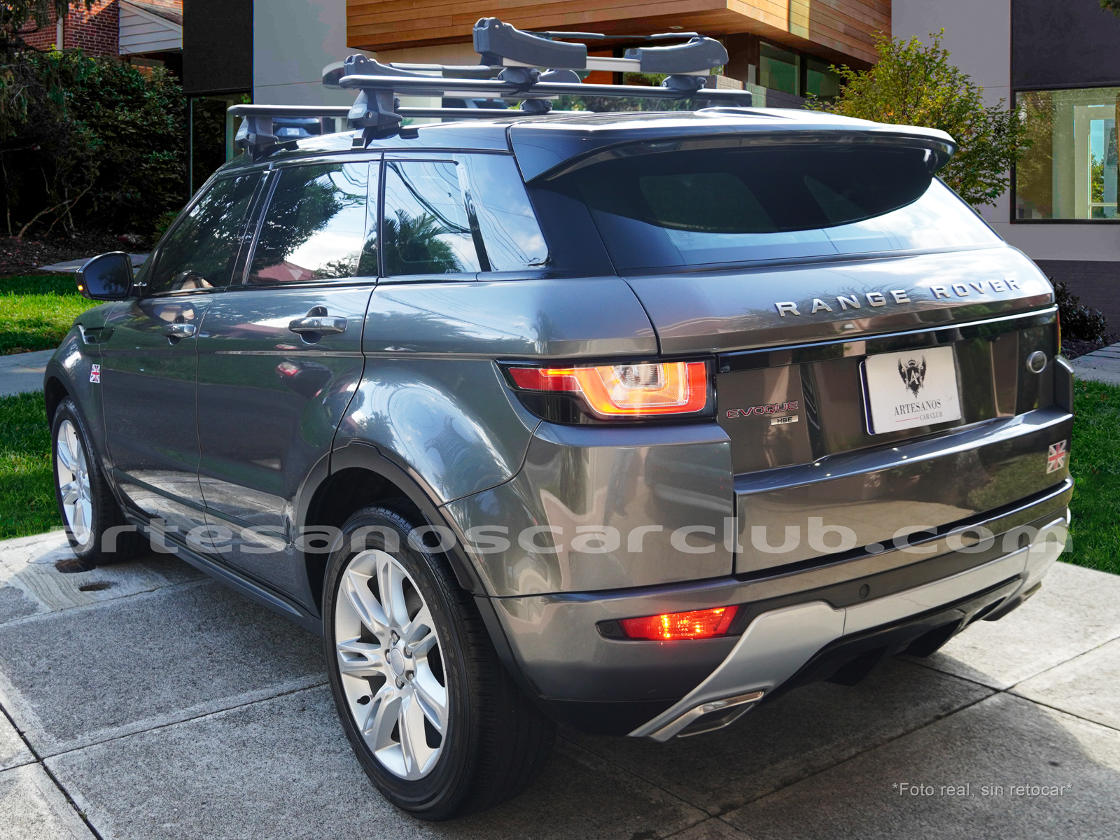 Moldura exterior trasera en negro brillante con inscripción RANGE ROVER en plata.