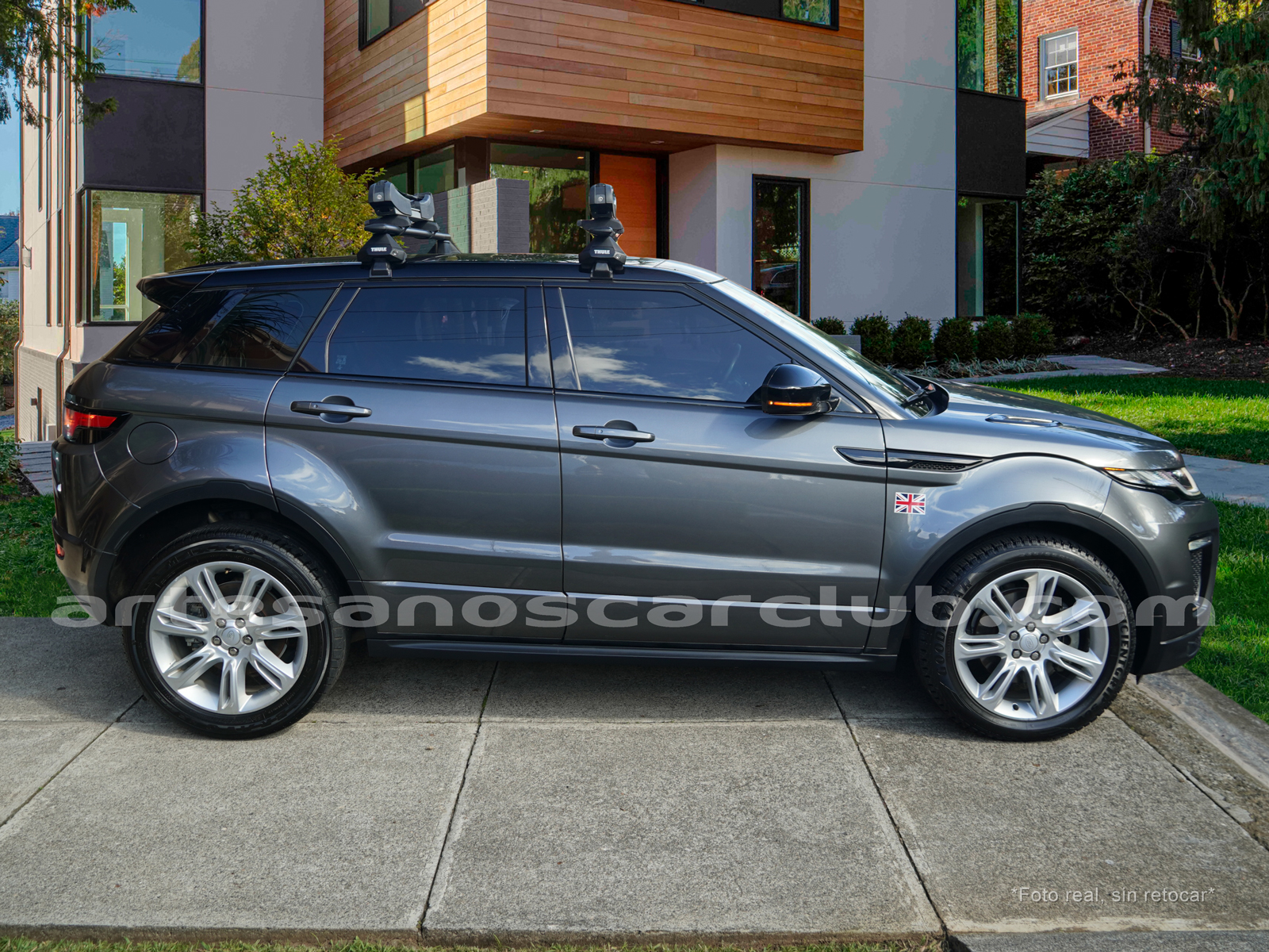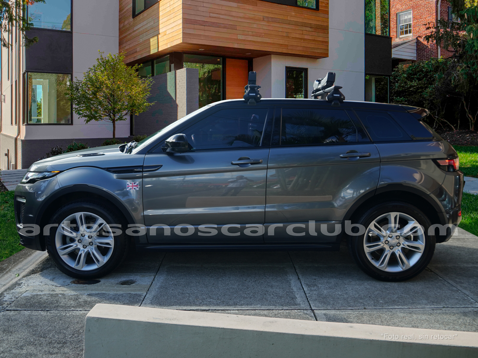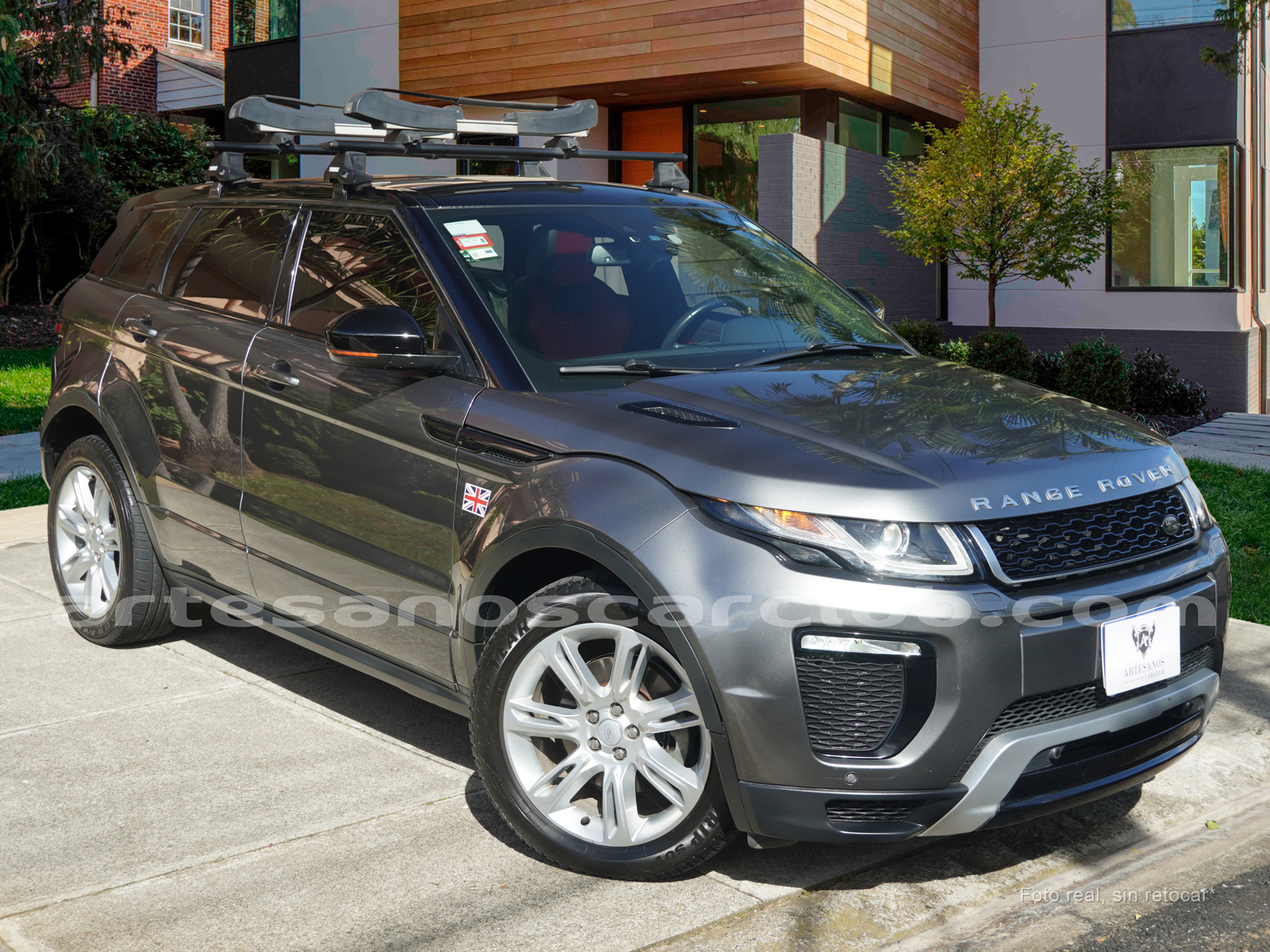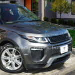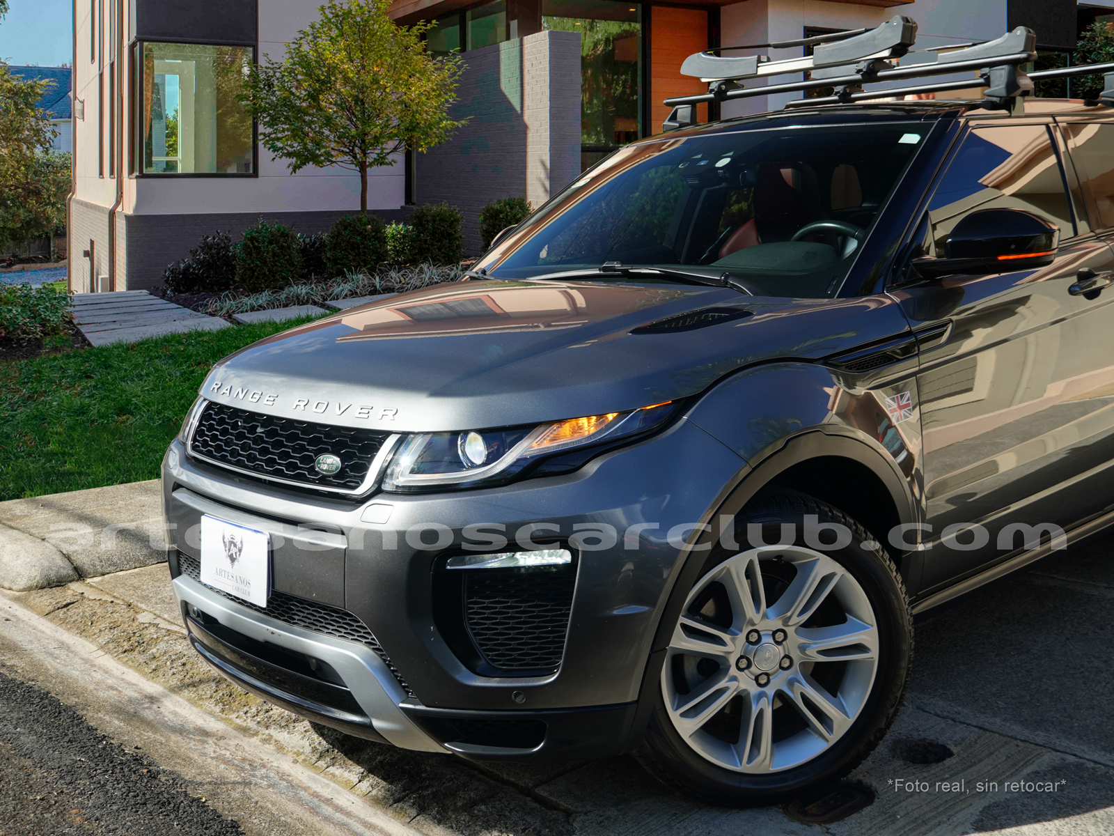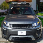 Moldura exterior trasera en negro brillante con inscripción RANGE ROVER en plata.