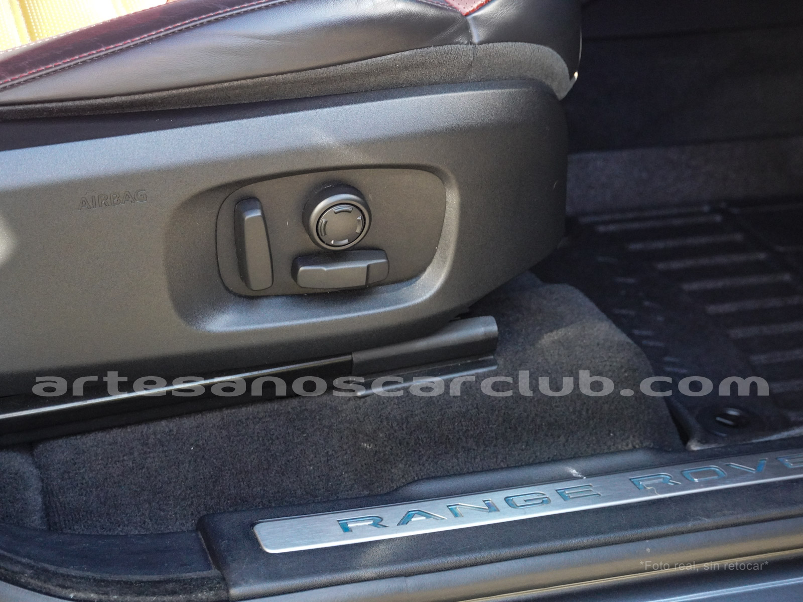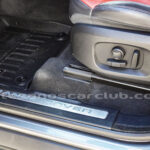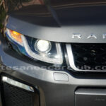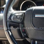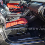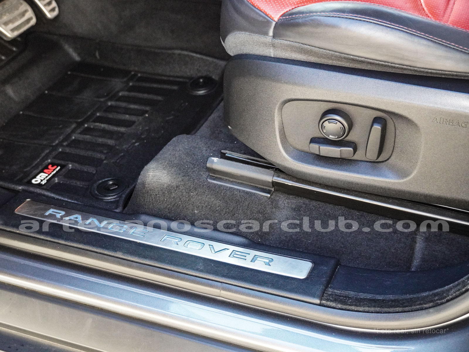 Molduras de ingreso a cabina en acero con inscripción RANGE ROVER retroiluminadas en azul océano.