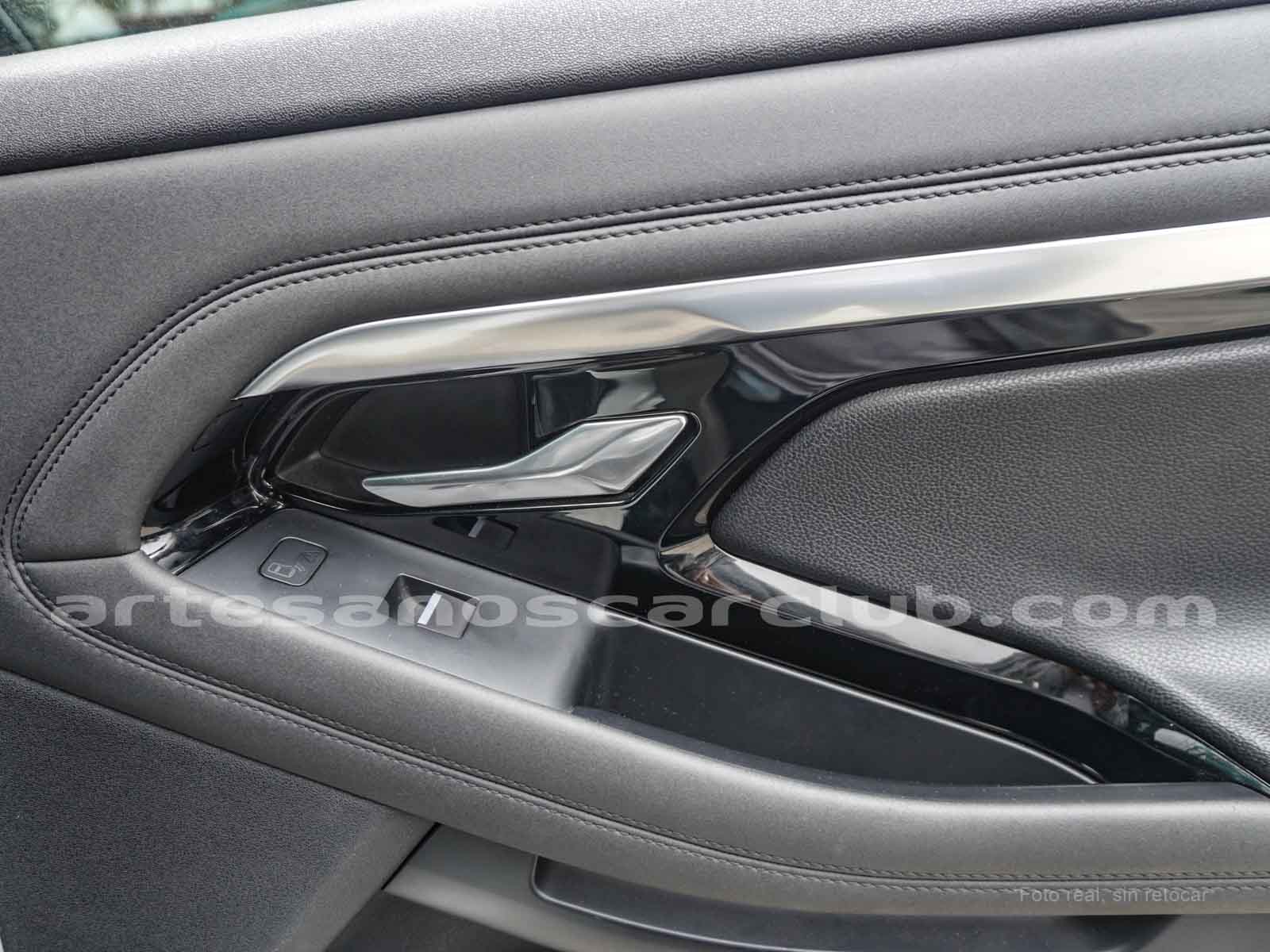 Interior de puertas en símil piel con costuras de contraste en color negro.