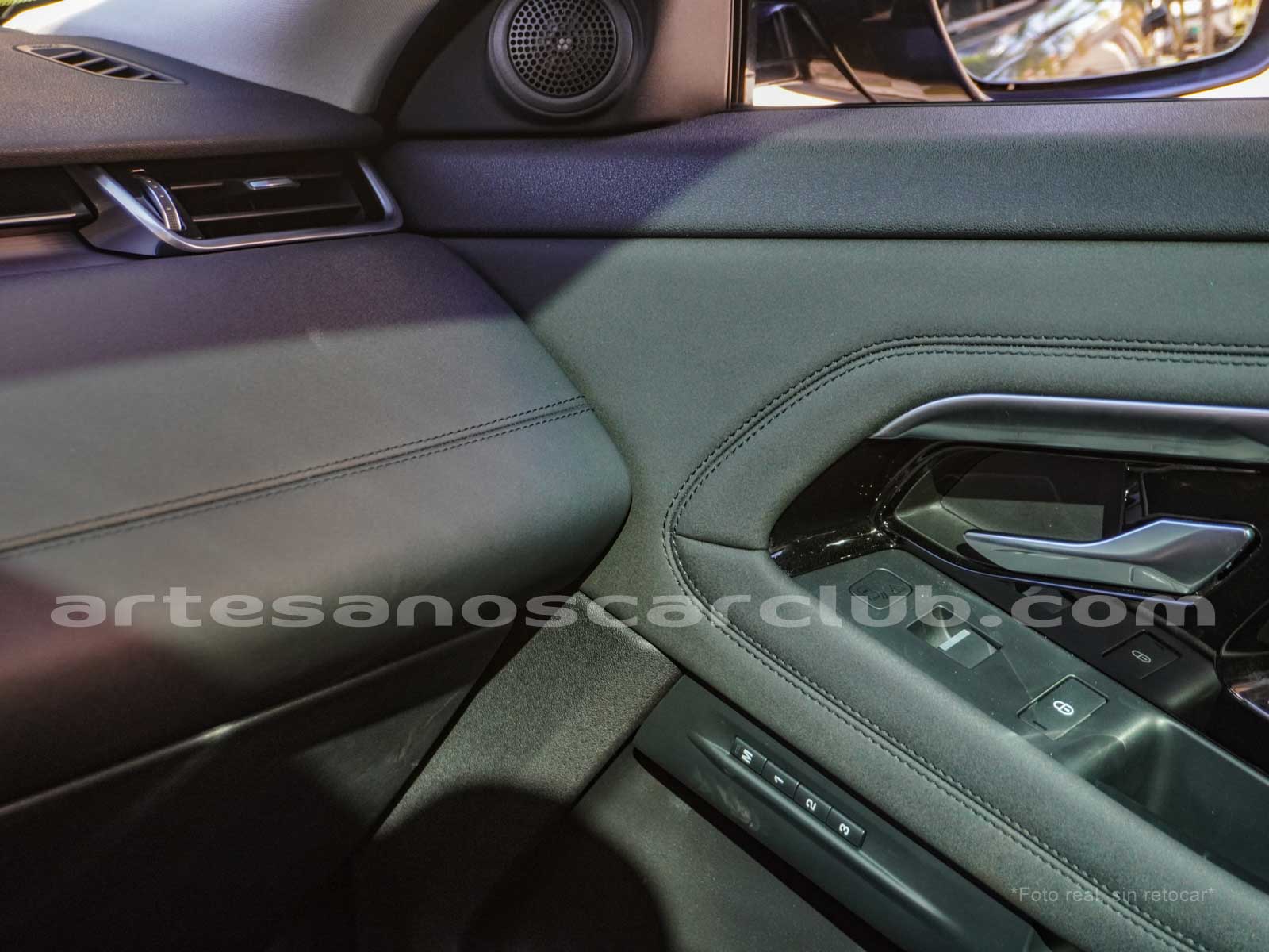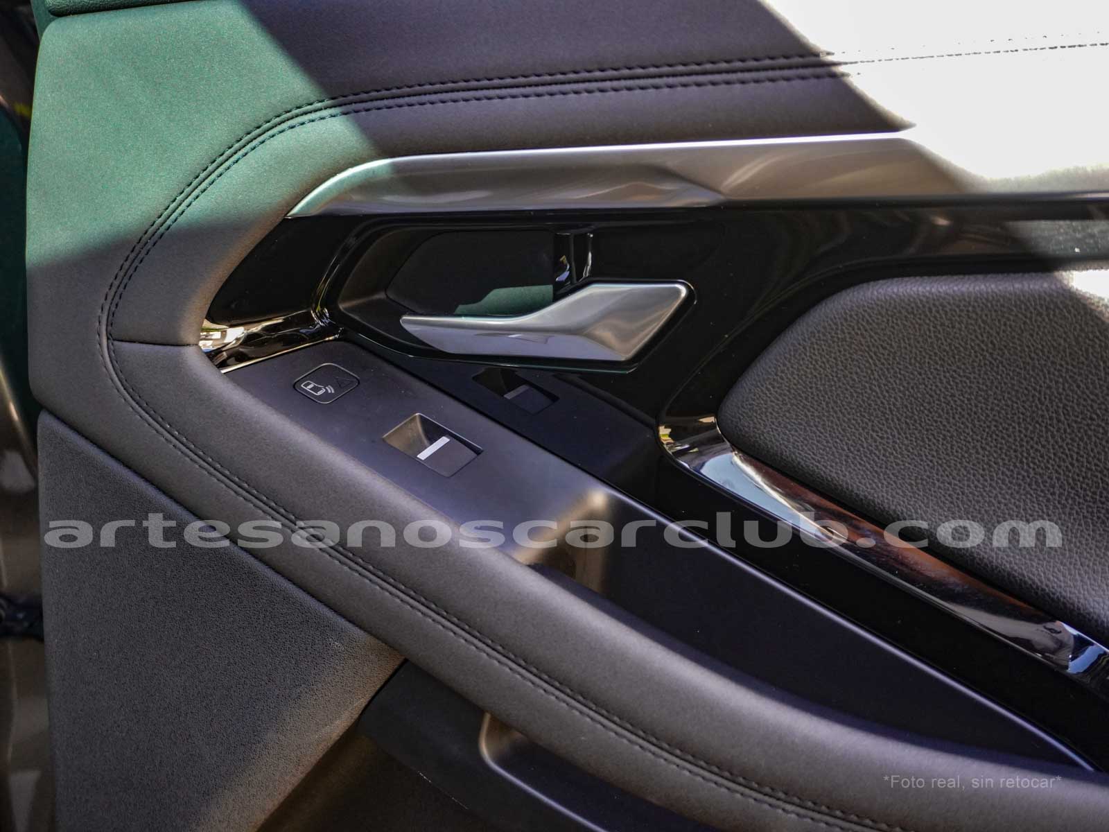 • Interior de puertas en símil piel con costuras de contraste en color negro.