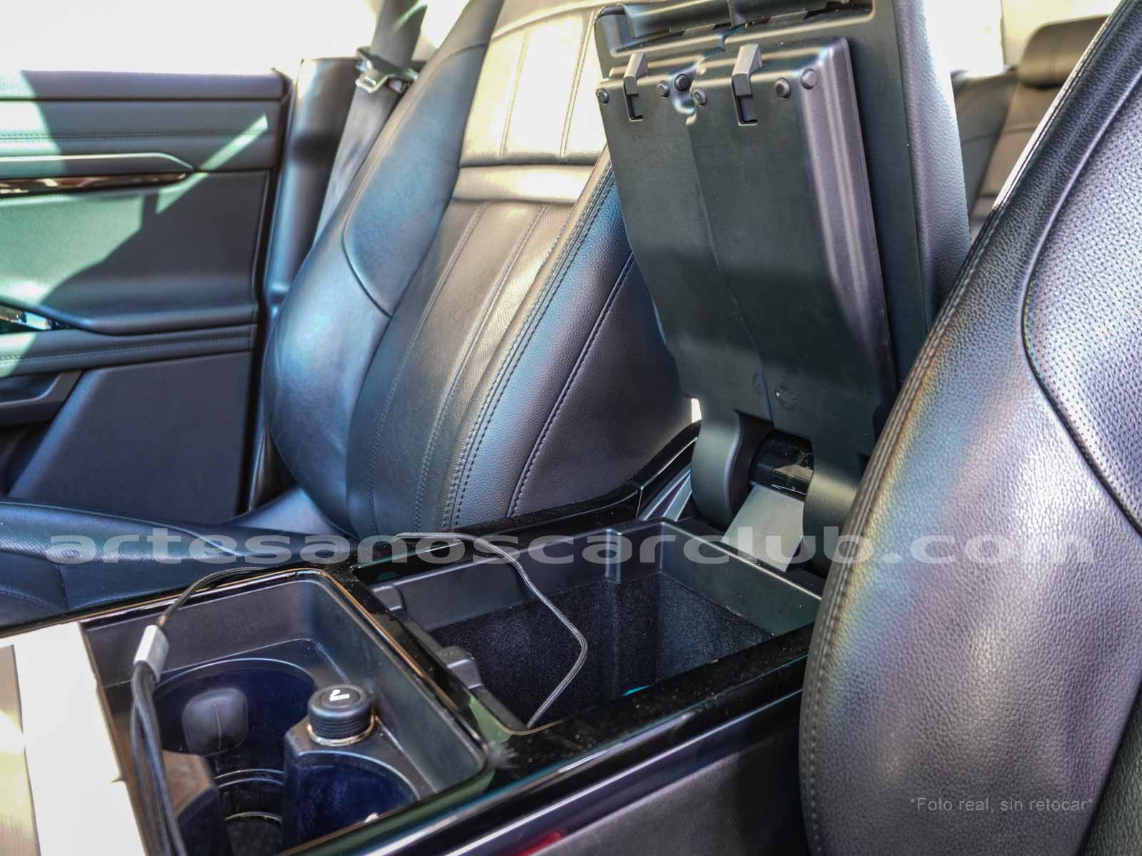 • Consola central con bodega y tapa dividida.