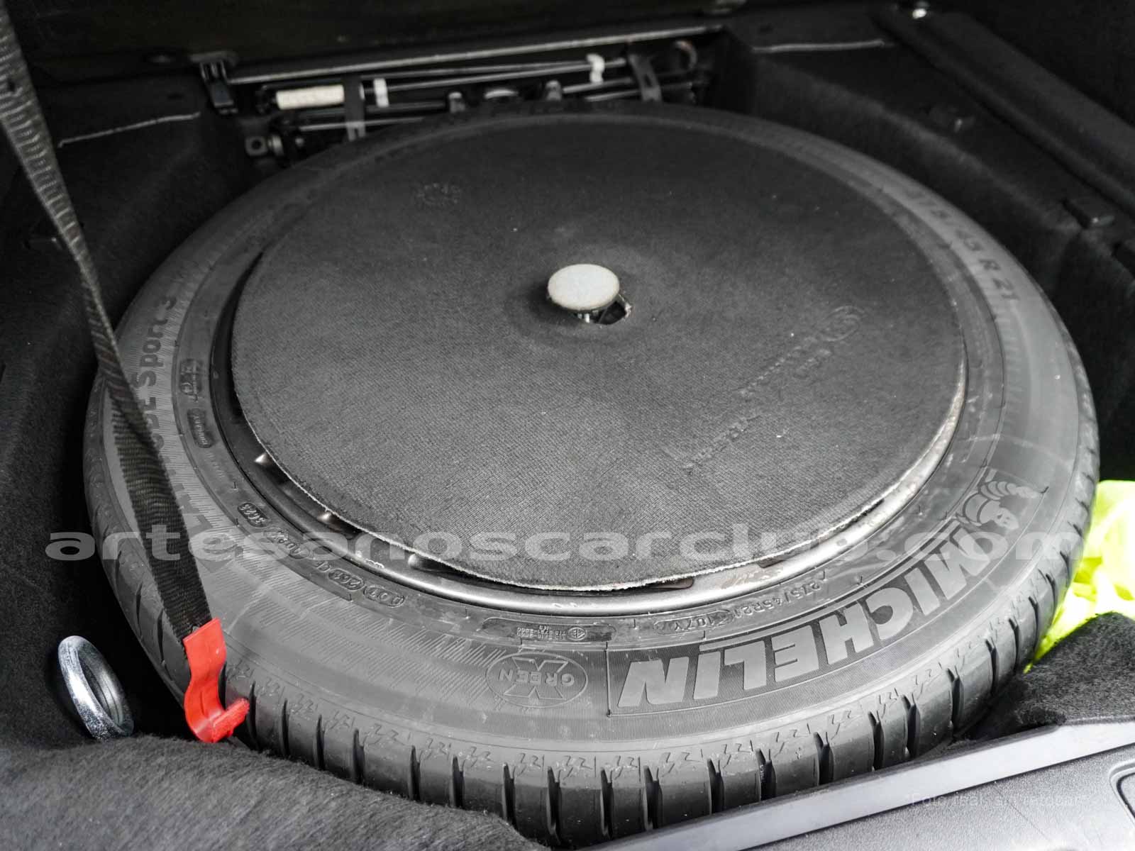 Rueda de repuesto de tamaño normal, oculta en baúl.