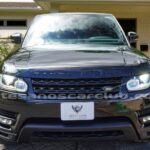 Molduras de ingreso a cabina en acero con logo Land Rover.