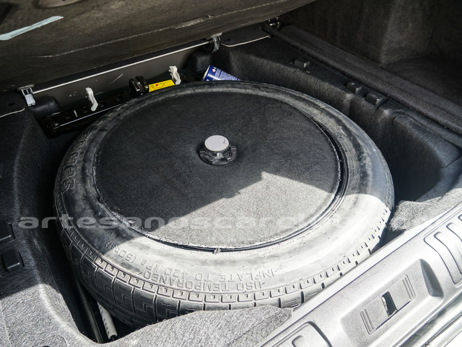 - Rueda de repuesto de tamaño normal de lujo en color negra brillante, oculta en baúl.