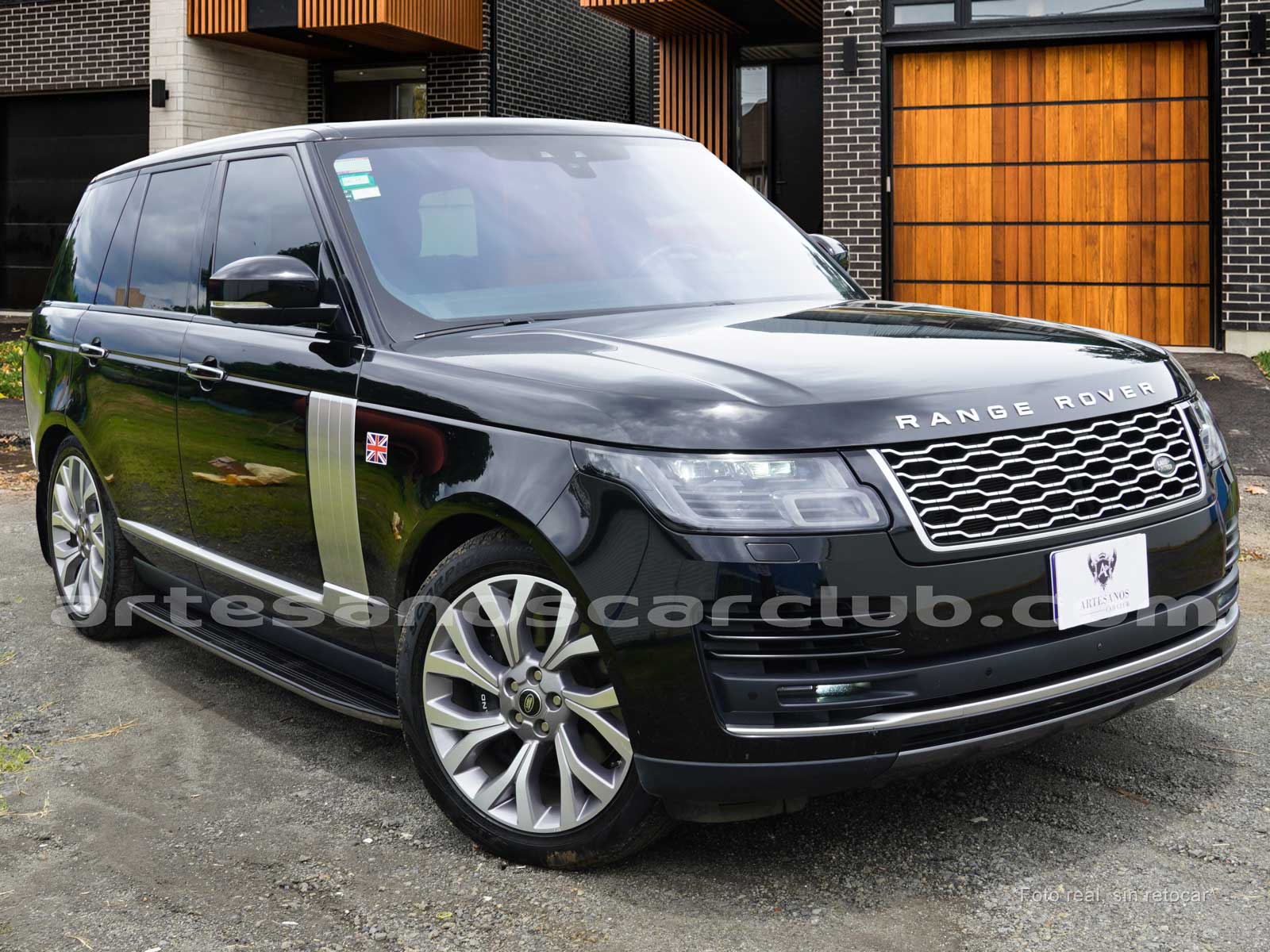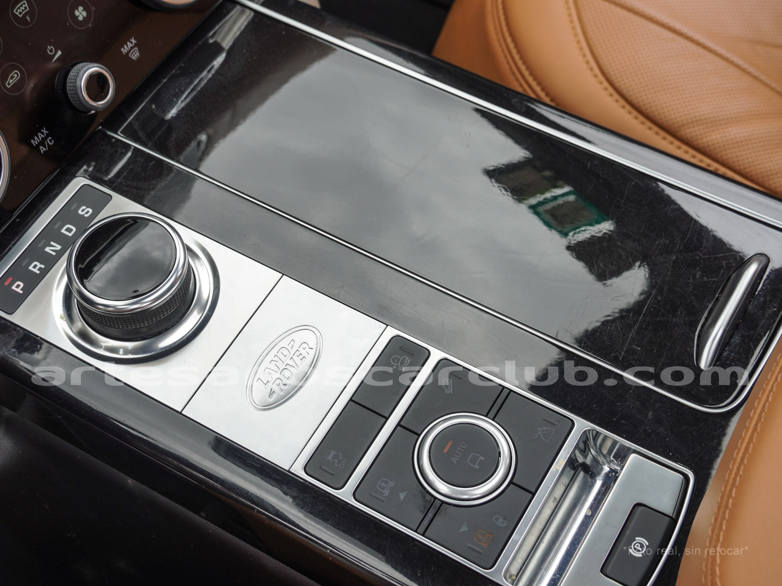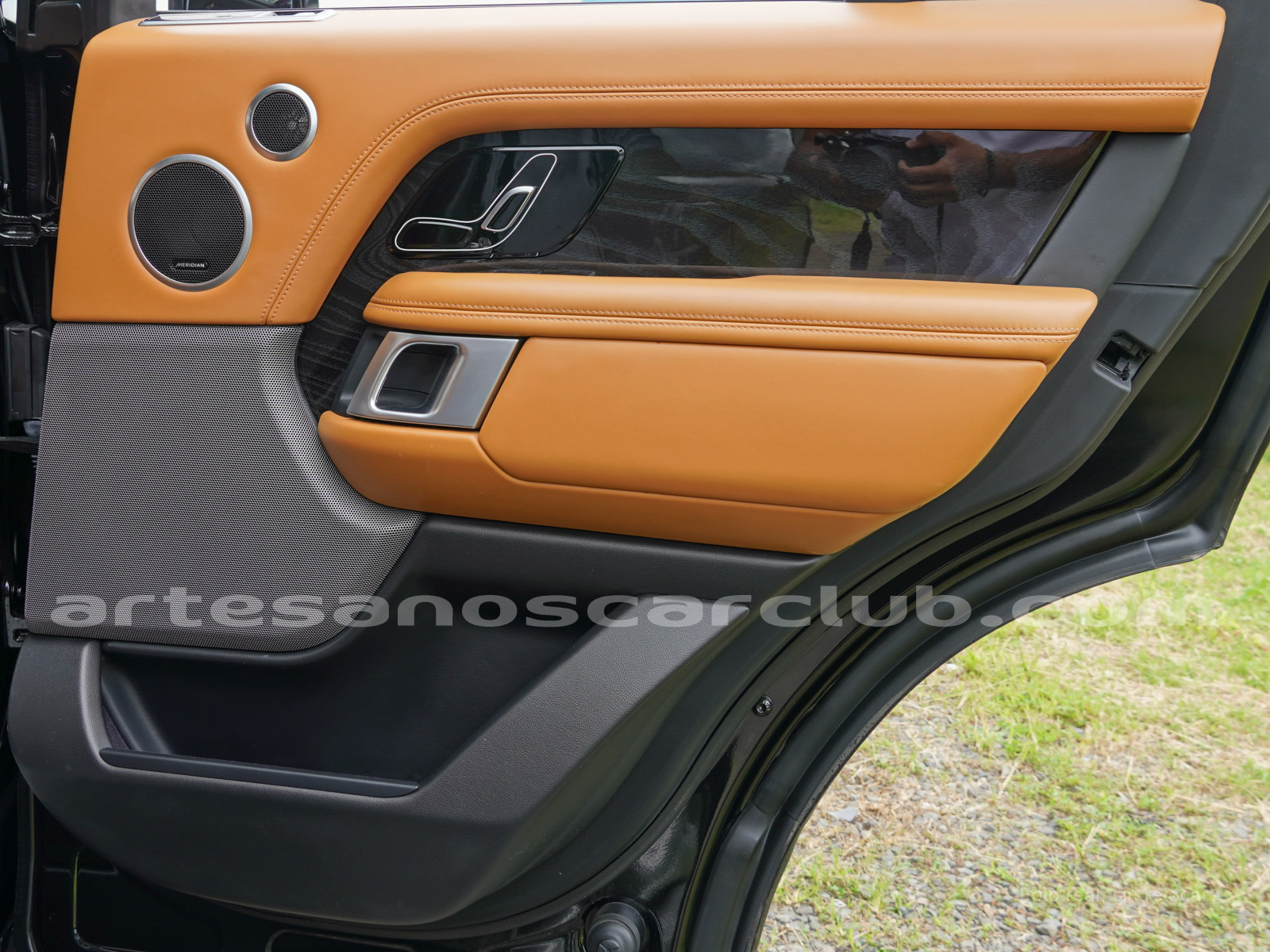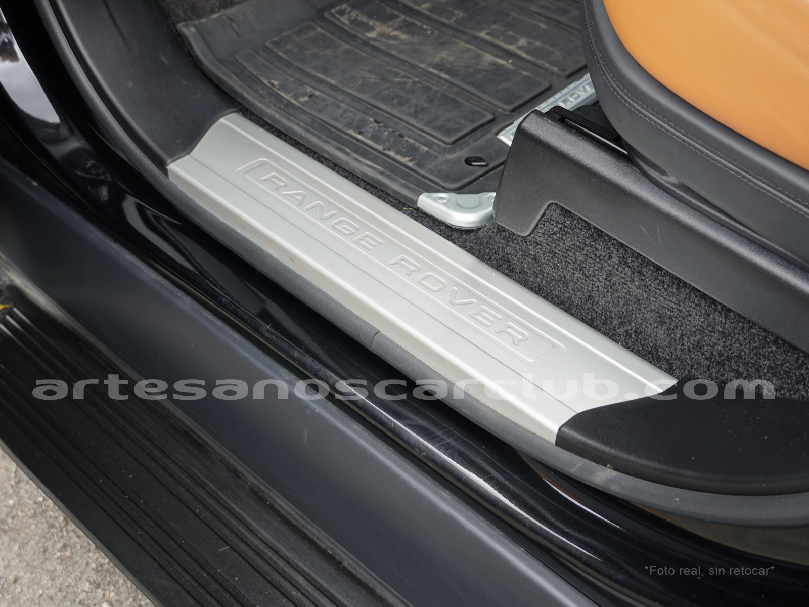 Tapicería en piel micro perforada marrón «Vintage Tang y negro «Ebony» , interior de techo en negro, alfombra principal en negro.