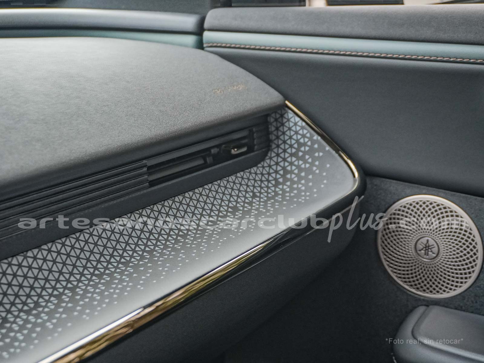• Dash y cintura media en color negro con áreas decorativas aluminio decorado, con acabados en microfibra negra de alto contraste.