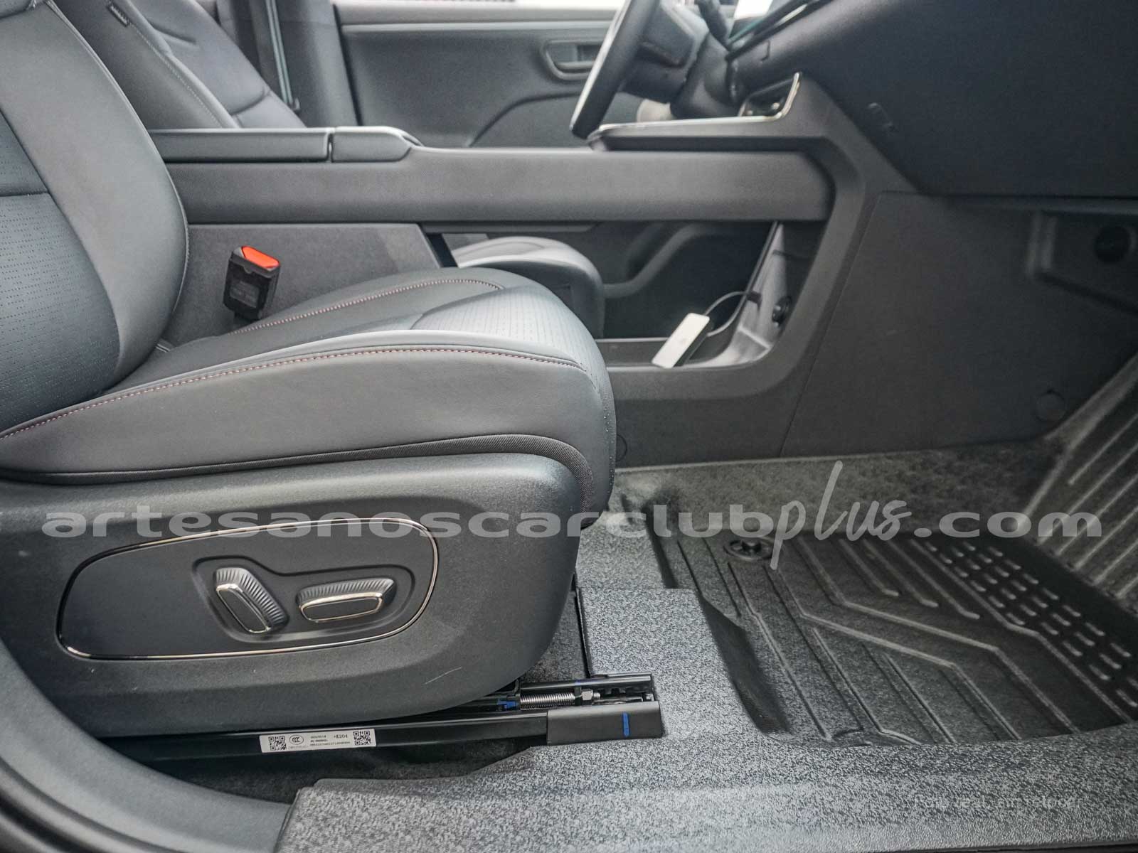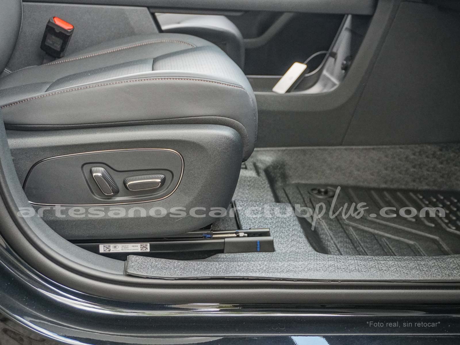 • Alfombra principal en textil negro.