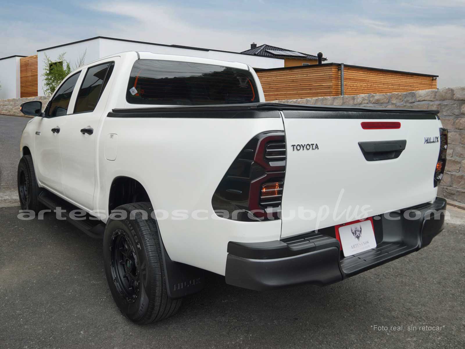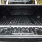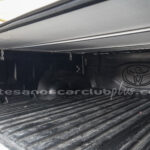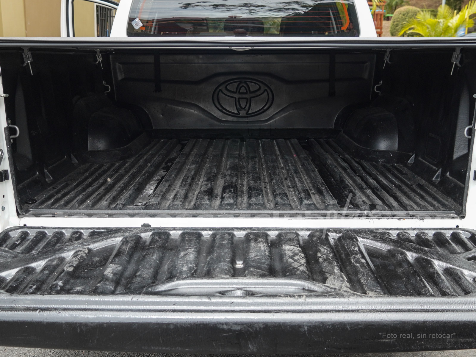 Compuerta de caja de carga con manija en negro.