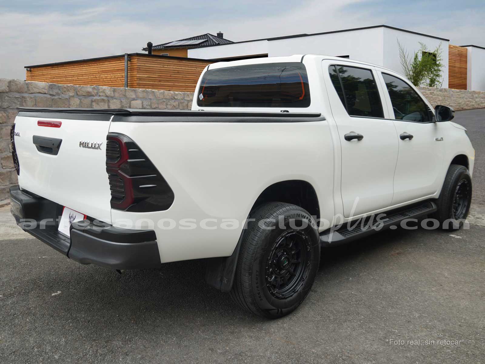 Bumper trasero en negro con apoyos en plástico negro.