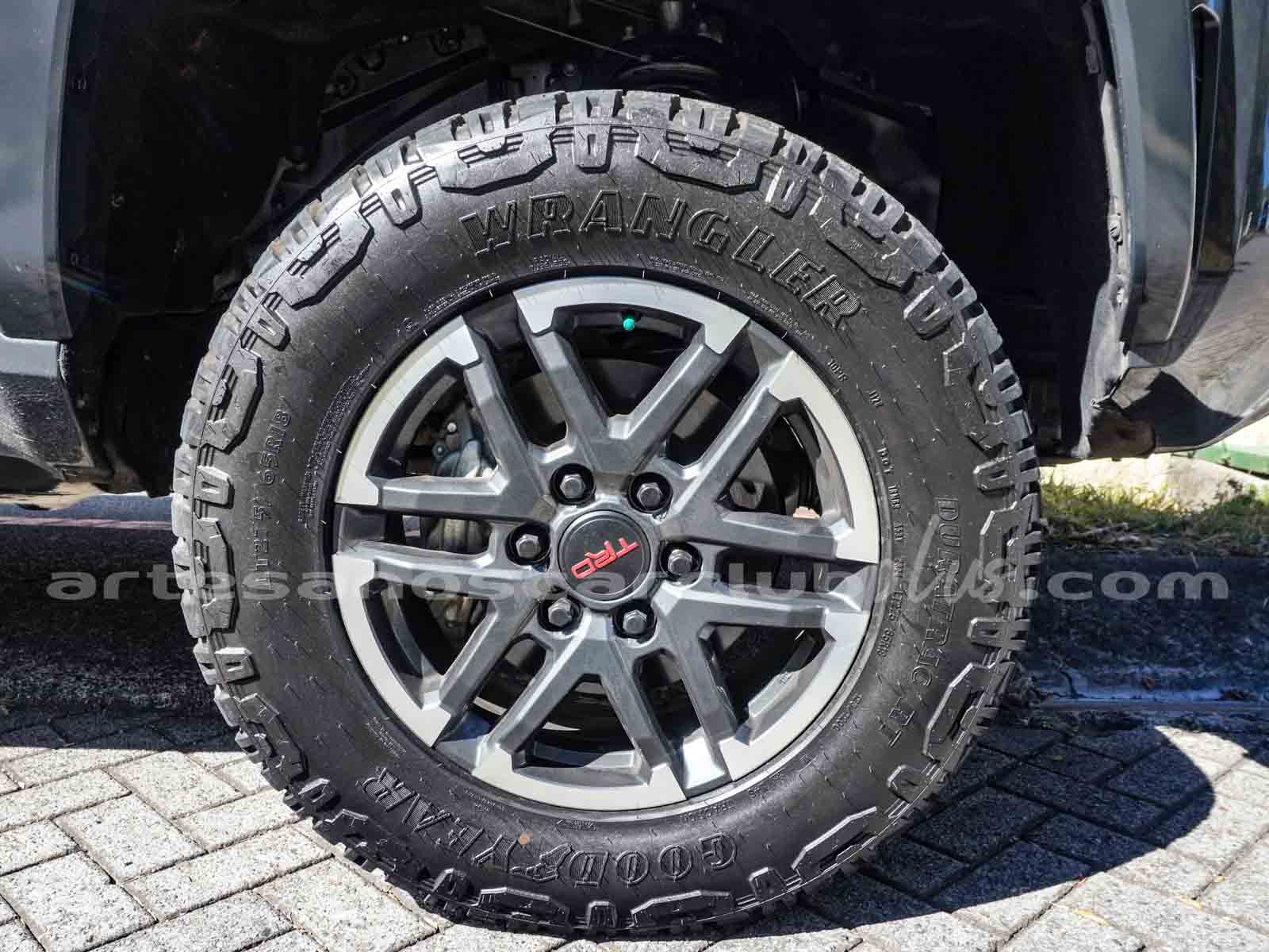 - Suspensión trasera: Eje rígido multi-link, barras laterales, resortes helicoidales, amortiguadores TRD y barra estabilizadora.