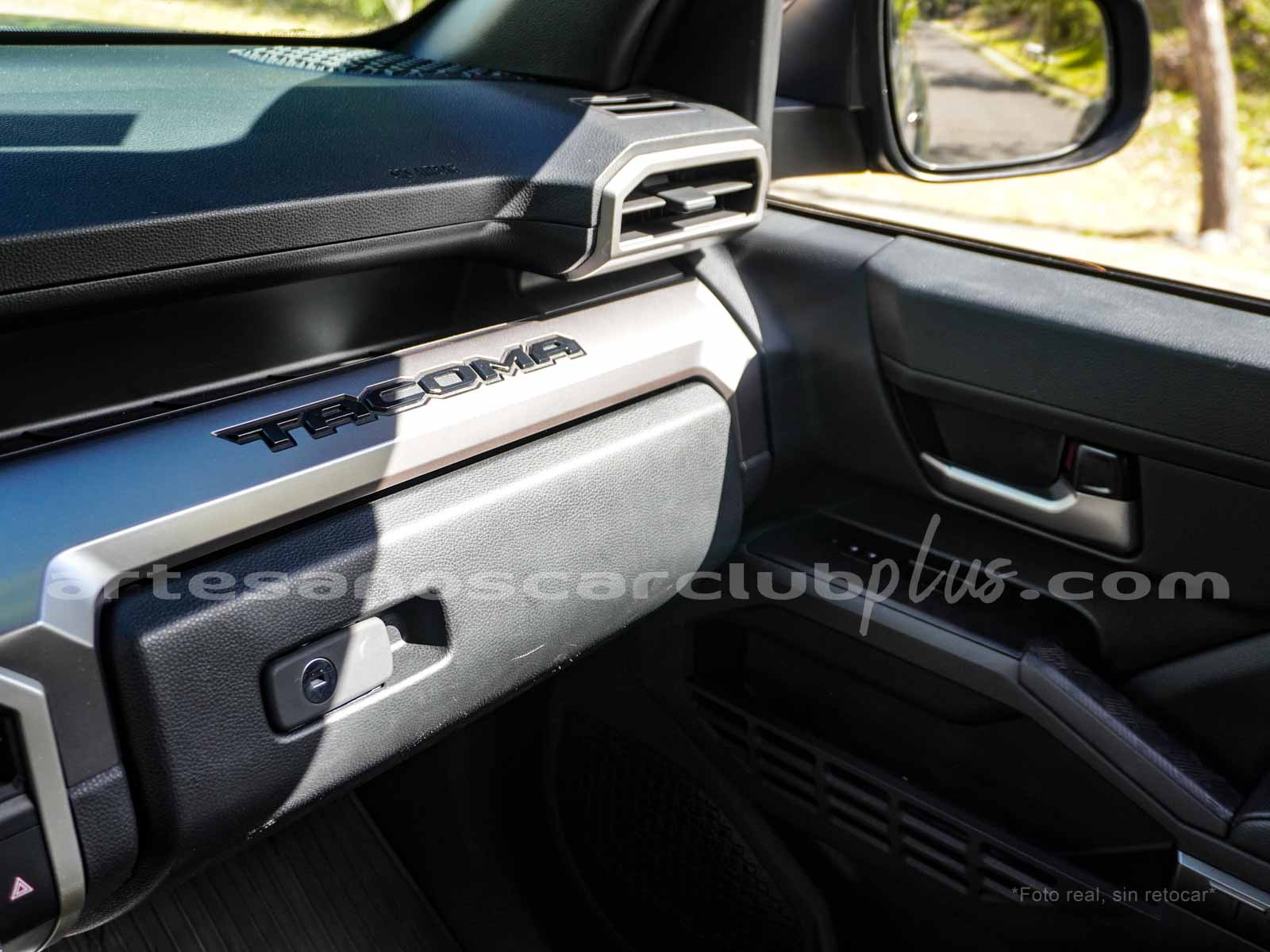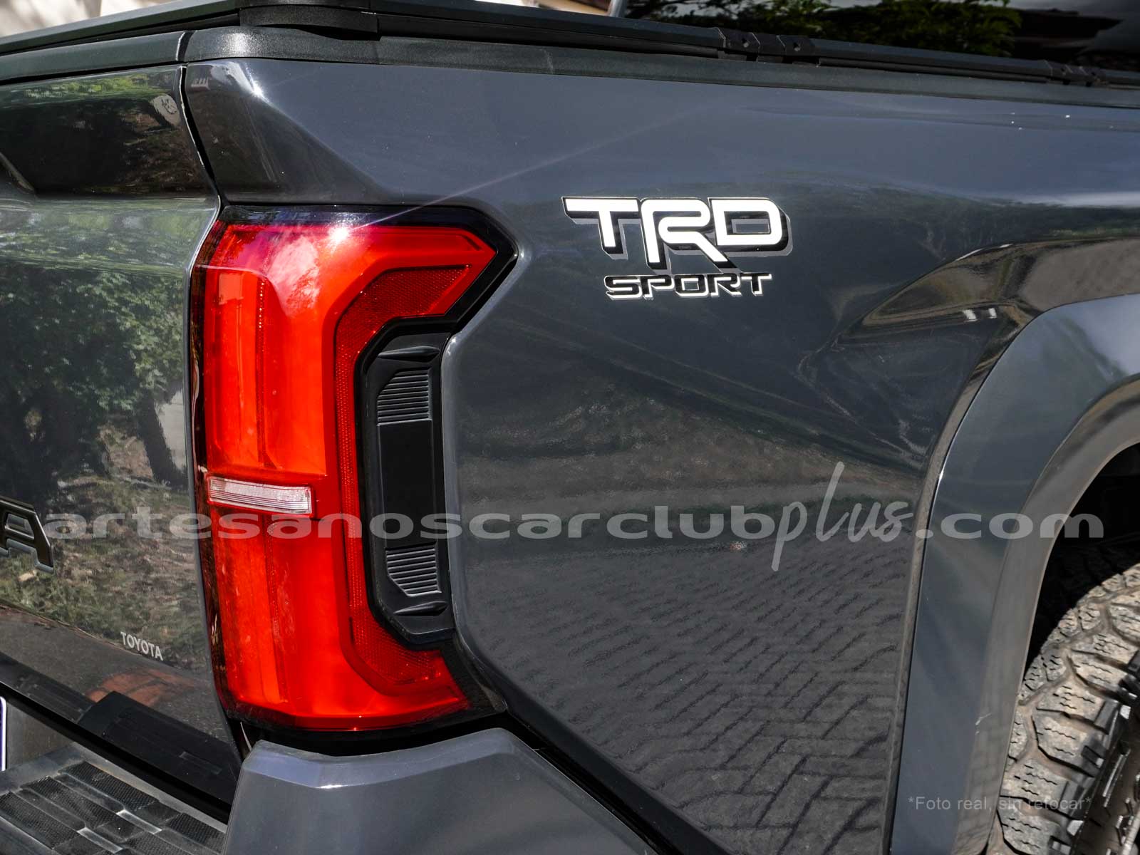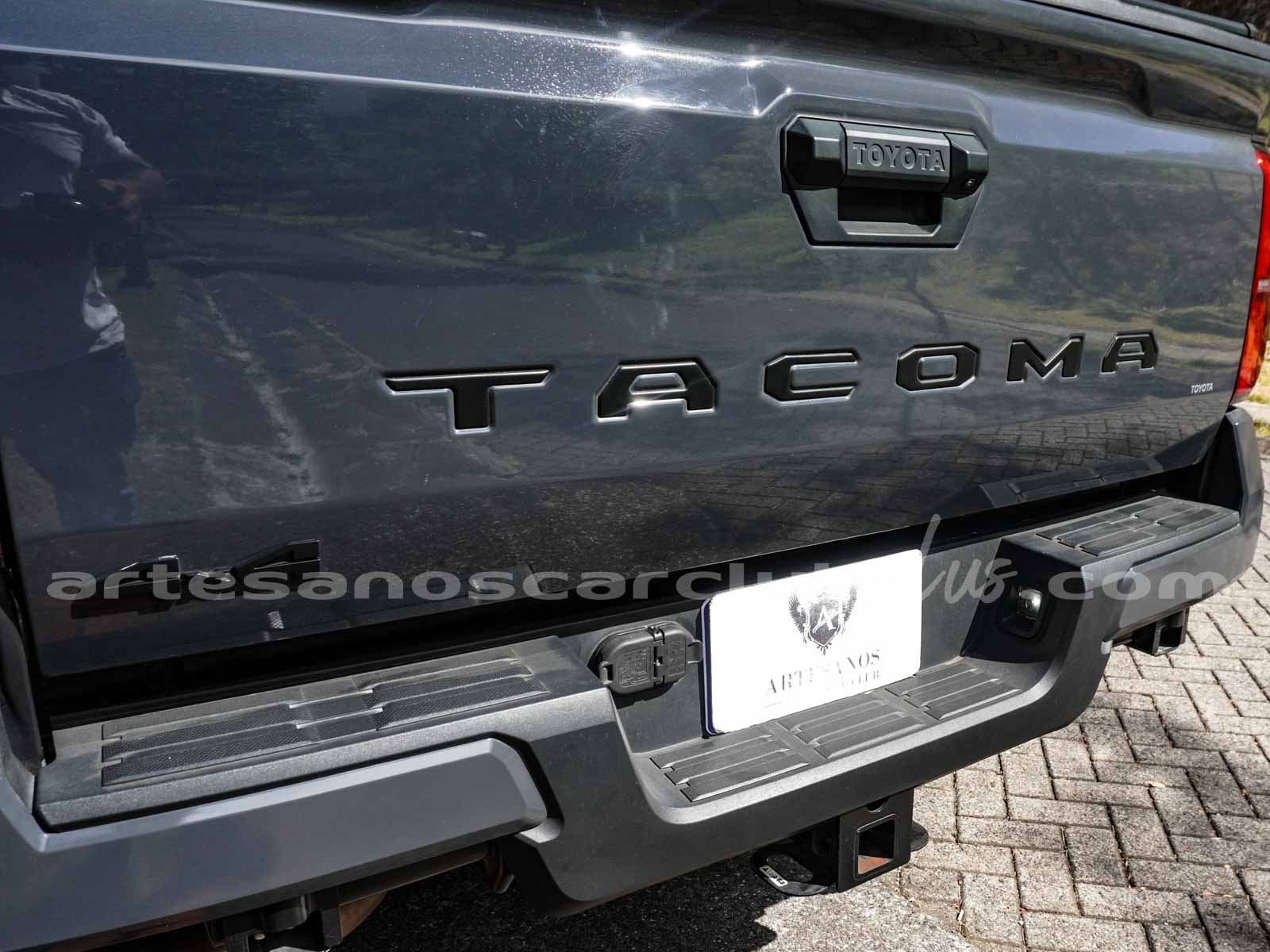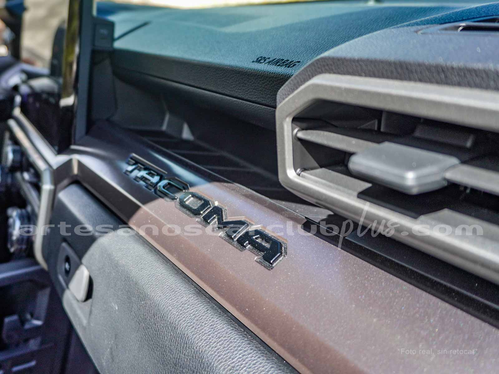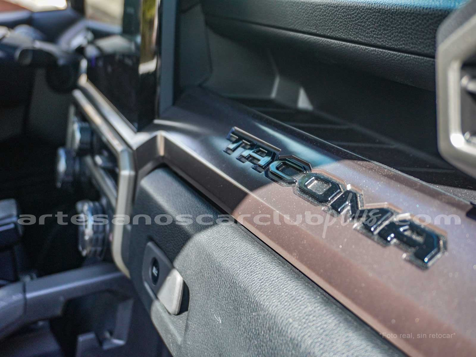 - Compuerta de baúl en cromo con inscripción «TACOMA».