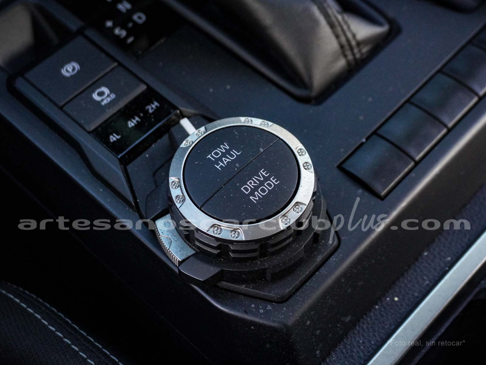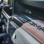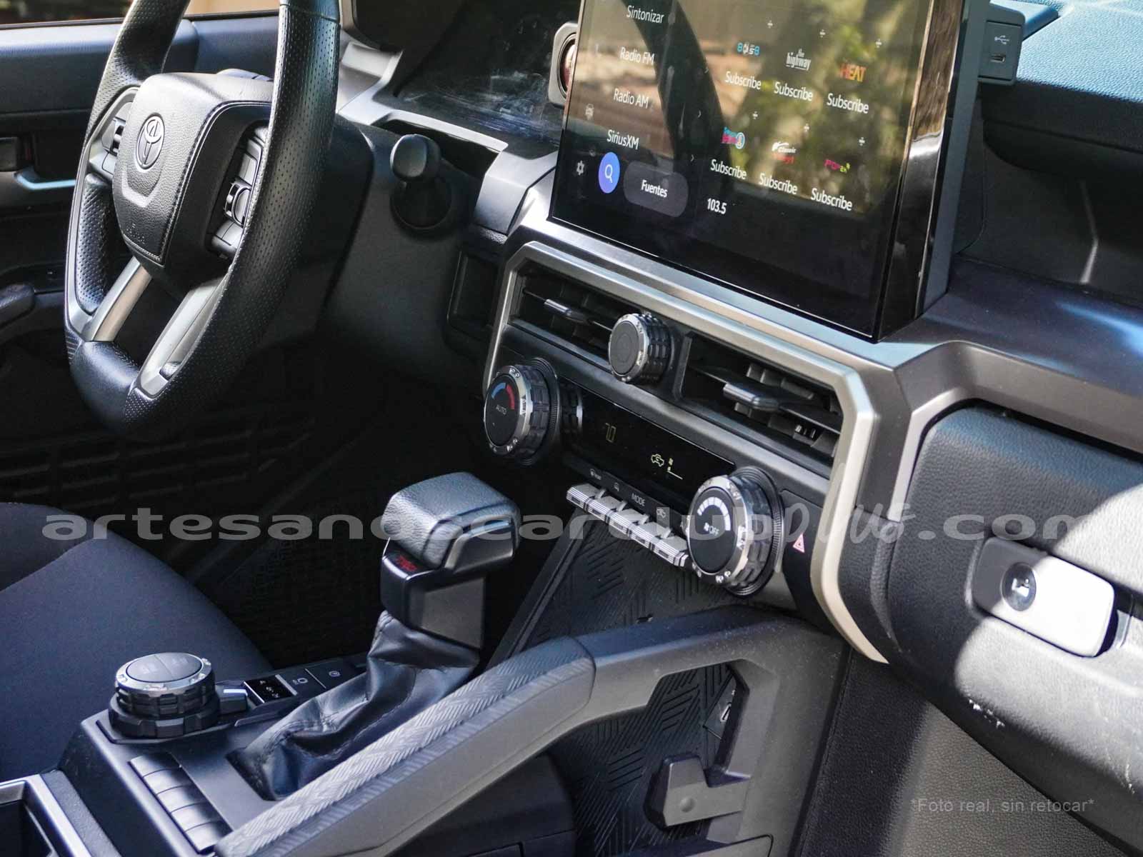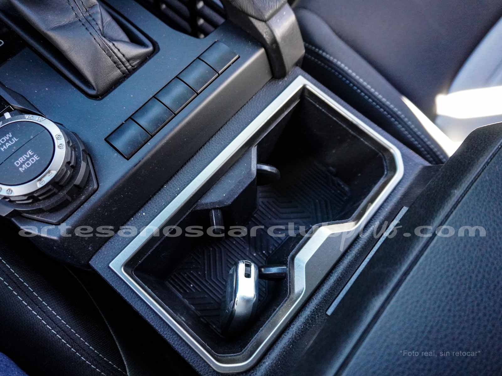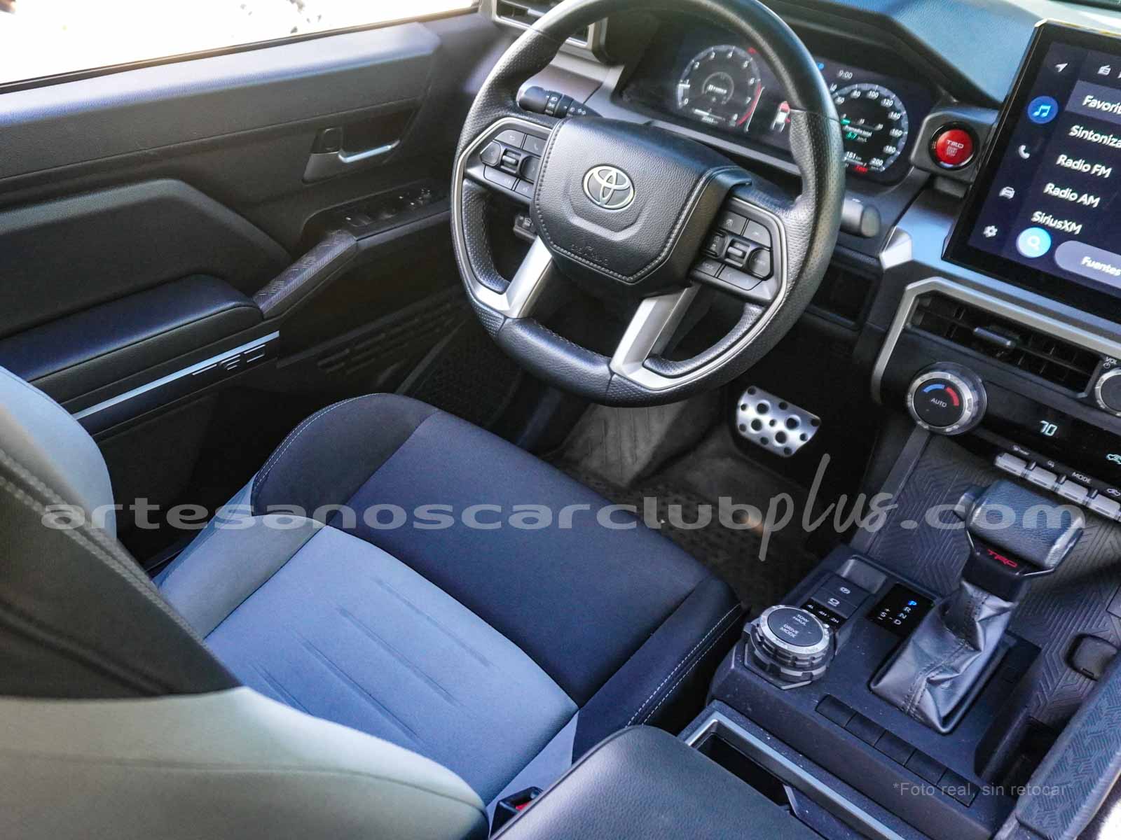 - Palanca de cambios en piel con detalle en plata e inscripción en rojo TRD.