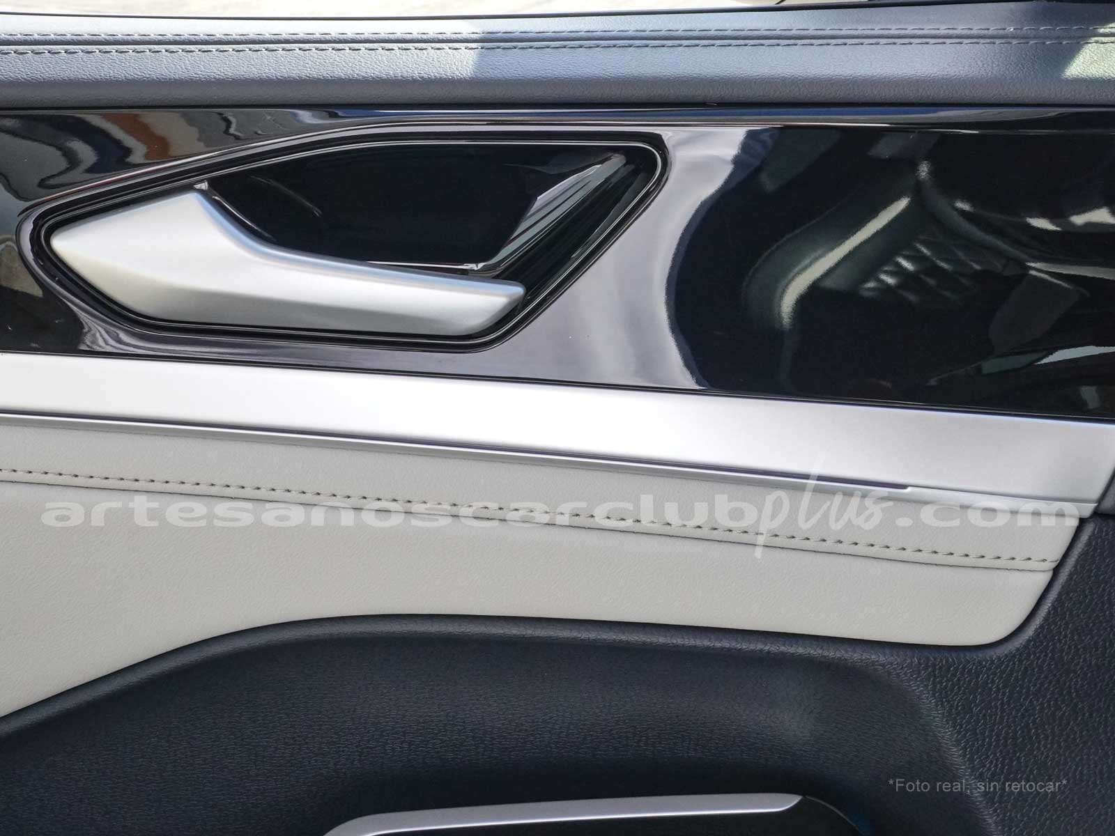 - Molduras interiores en piano negro brillante retroiluminada y aluminio cepillado.