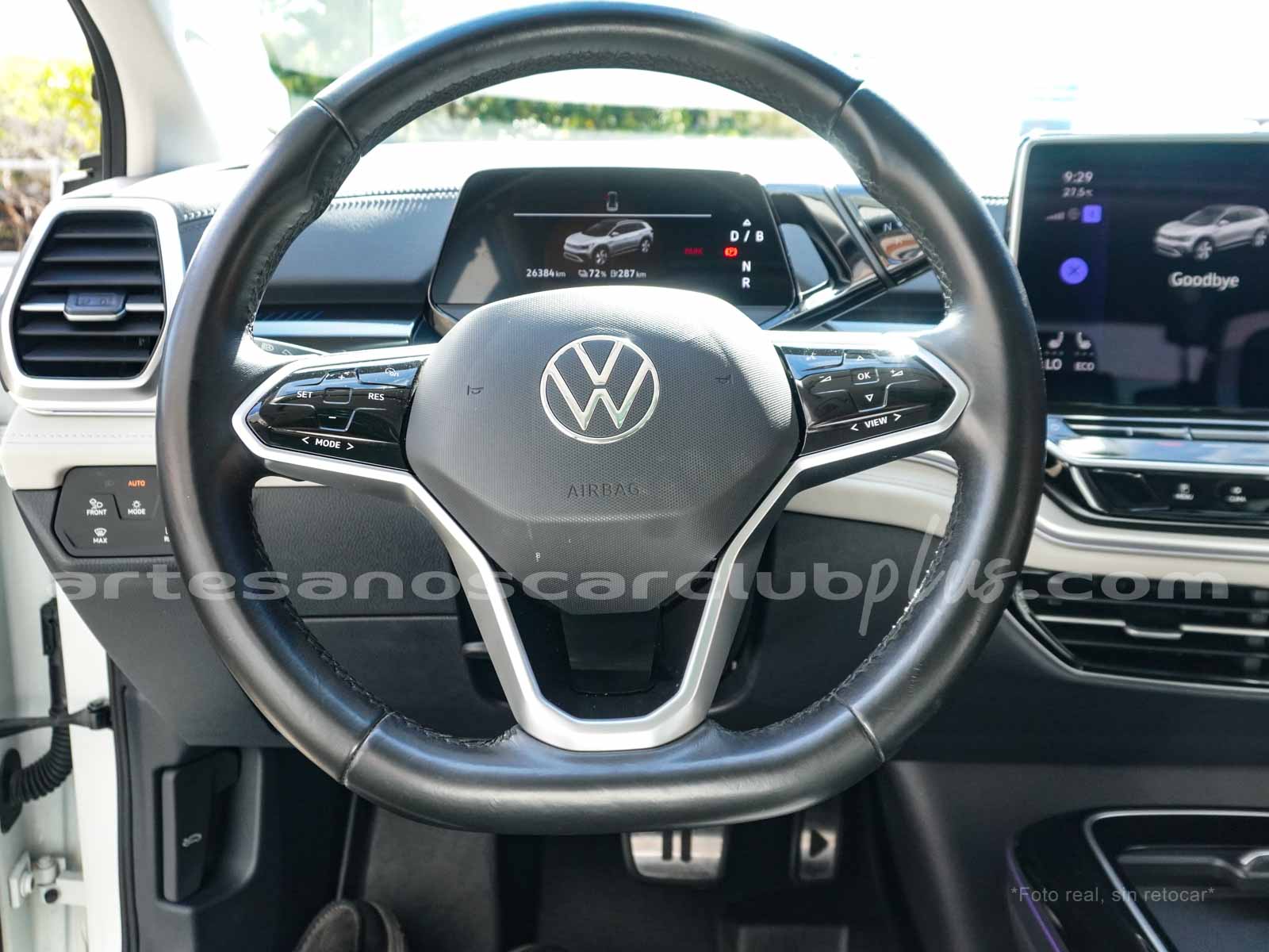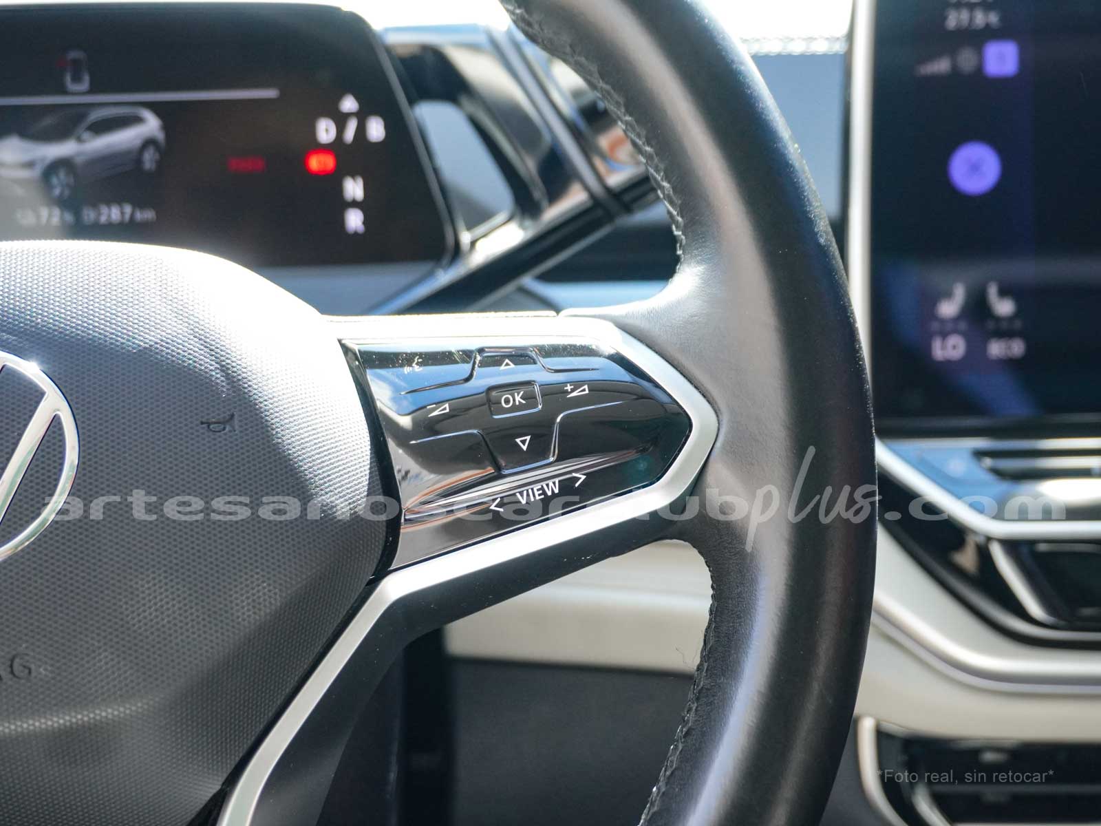 - Volante de 4 radios multifunción con diseño en «D» en piel negra con detalles en aluminio, piano negro.