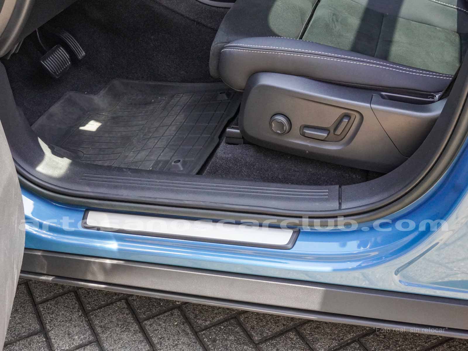 Moldura de ingreso a cabina en acero/plástico negro con inscripción Recharge.