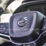 Volante Sport de 4 radios multifunción en piel negra con botones negros, costuras de alto contraste blancas y detalles en «Silk».