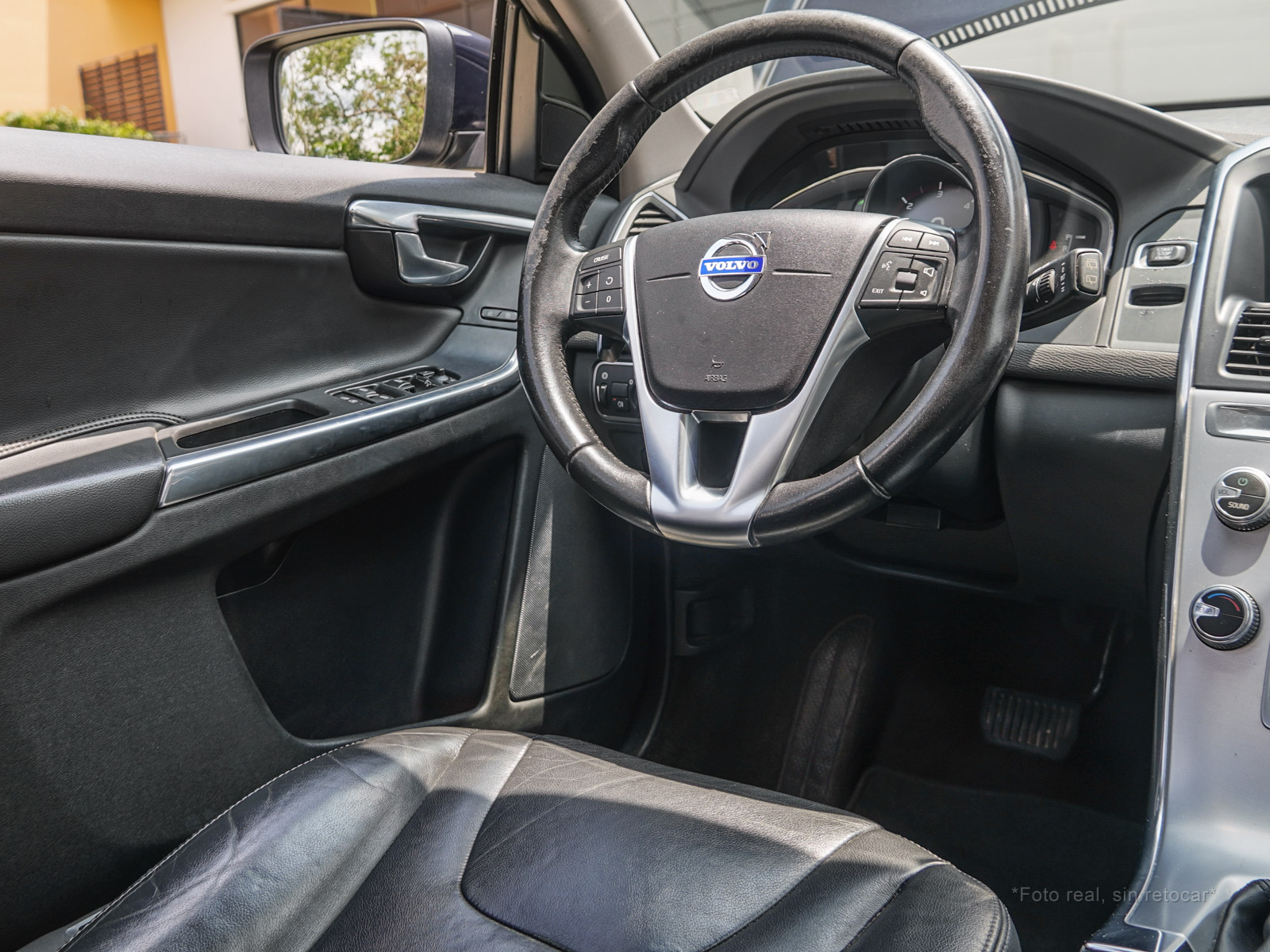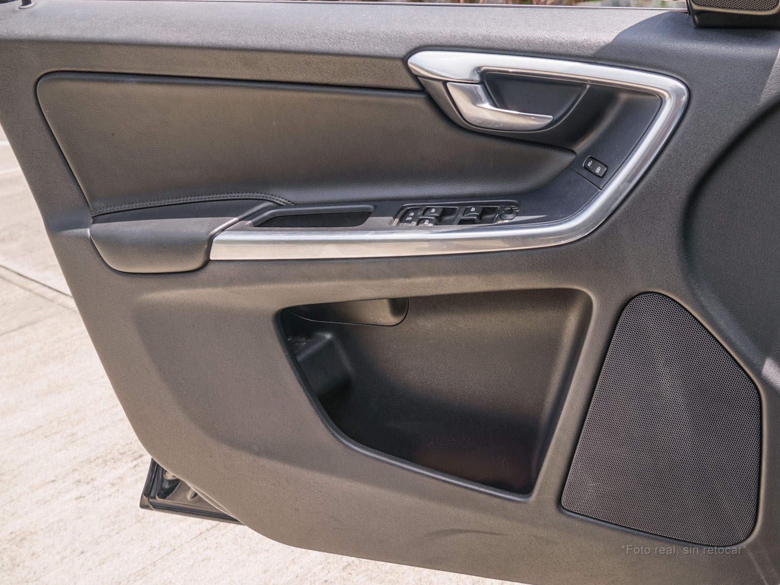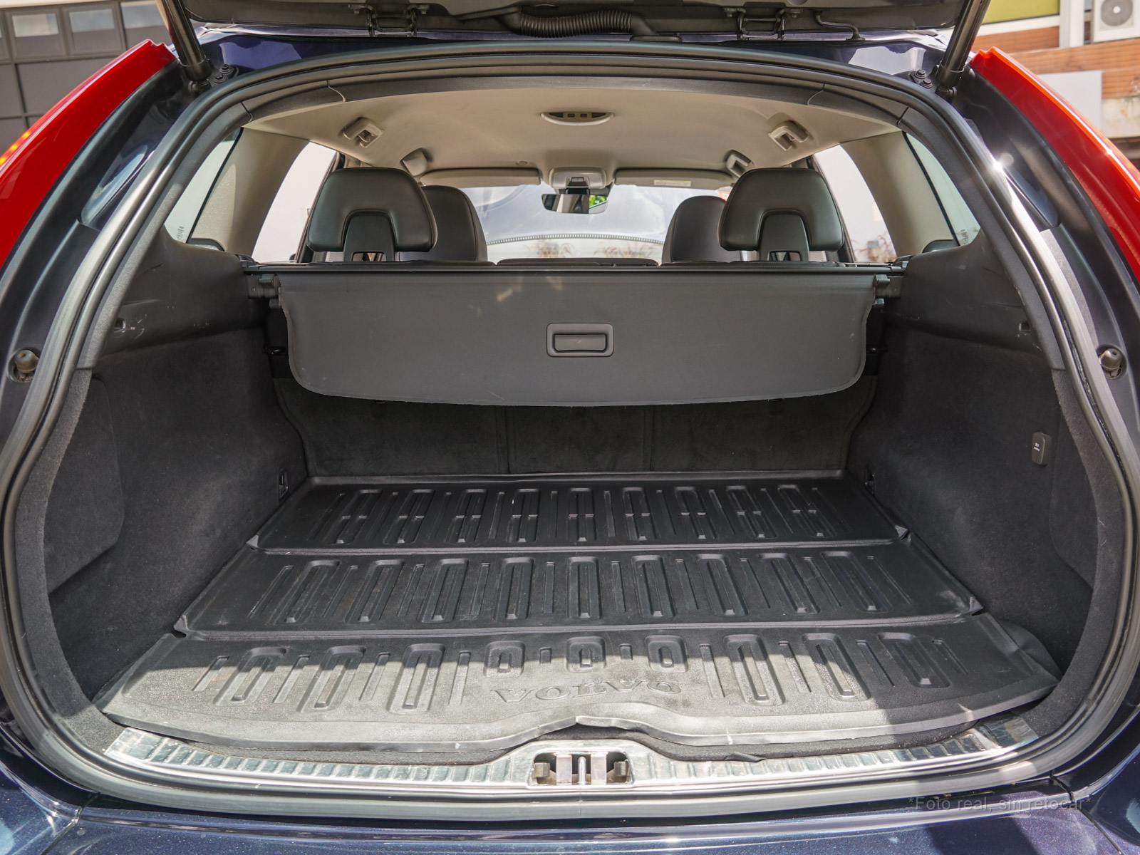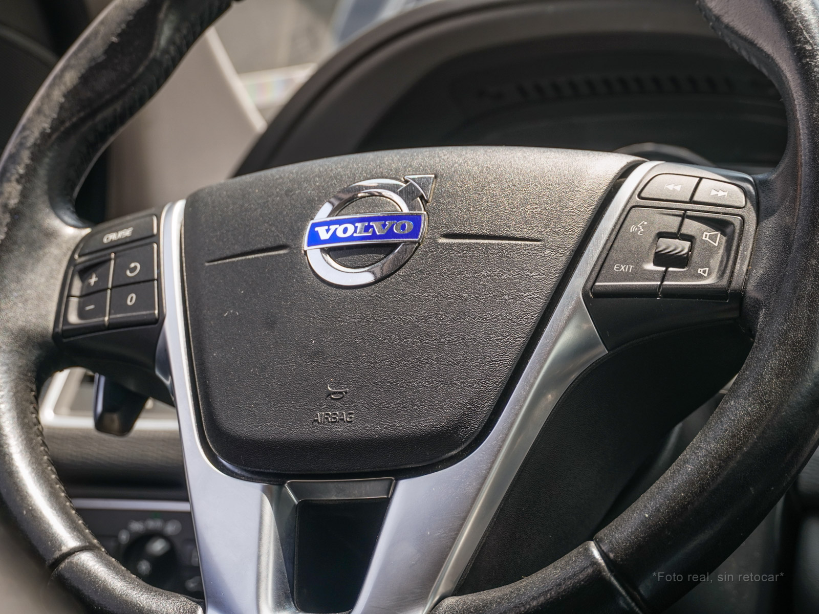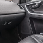 Moldura de ingreso a cabina en plástico negro con inscripción VOLVO en cromo.