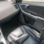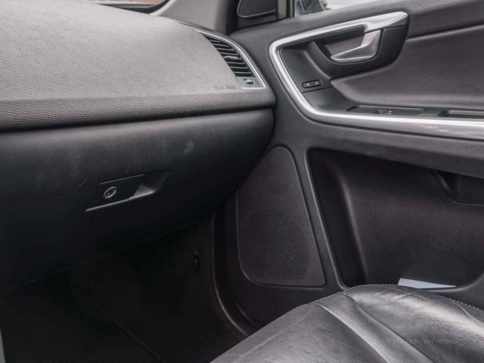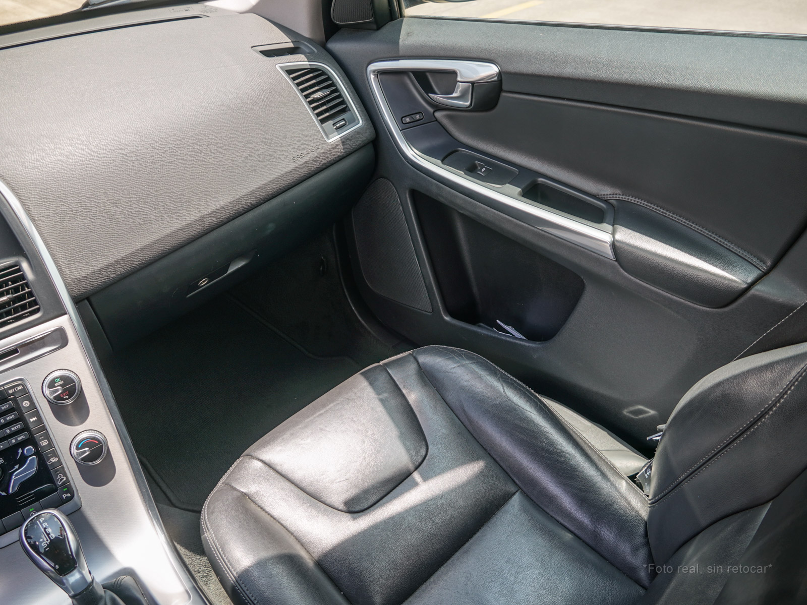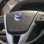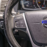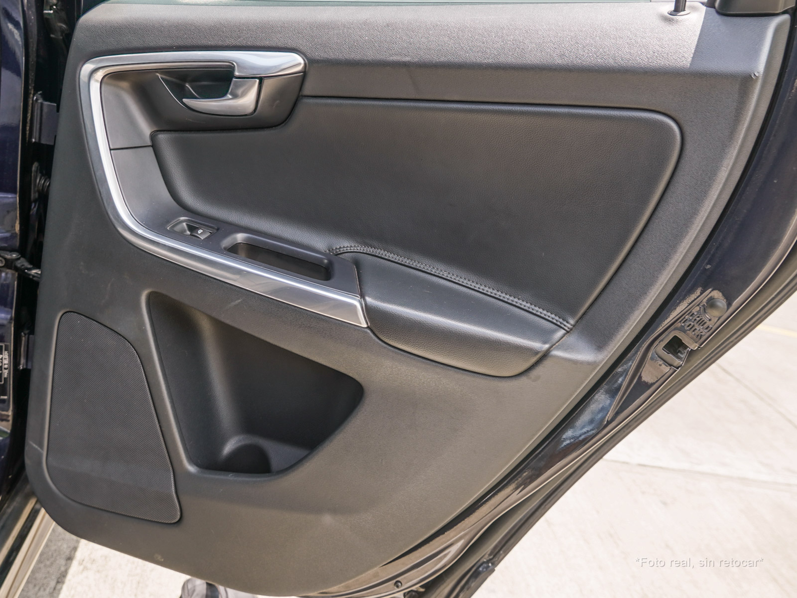 Moldura de ingreso a cabina en plástico negro con inscripción VOLVO en cromo.