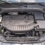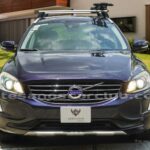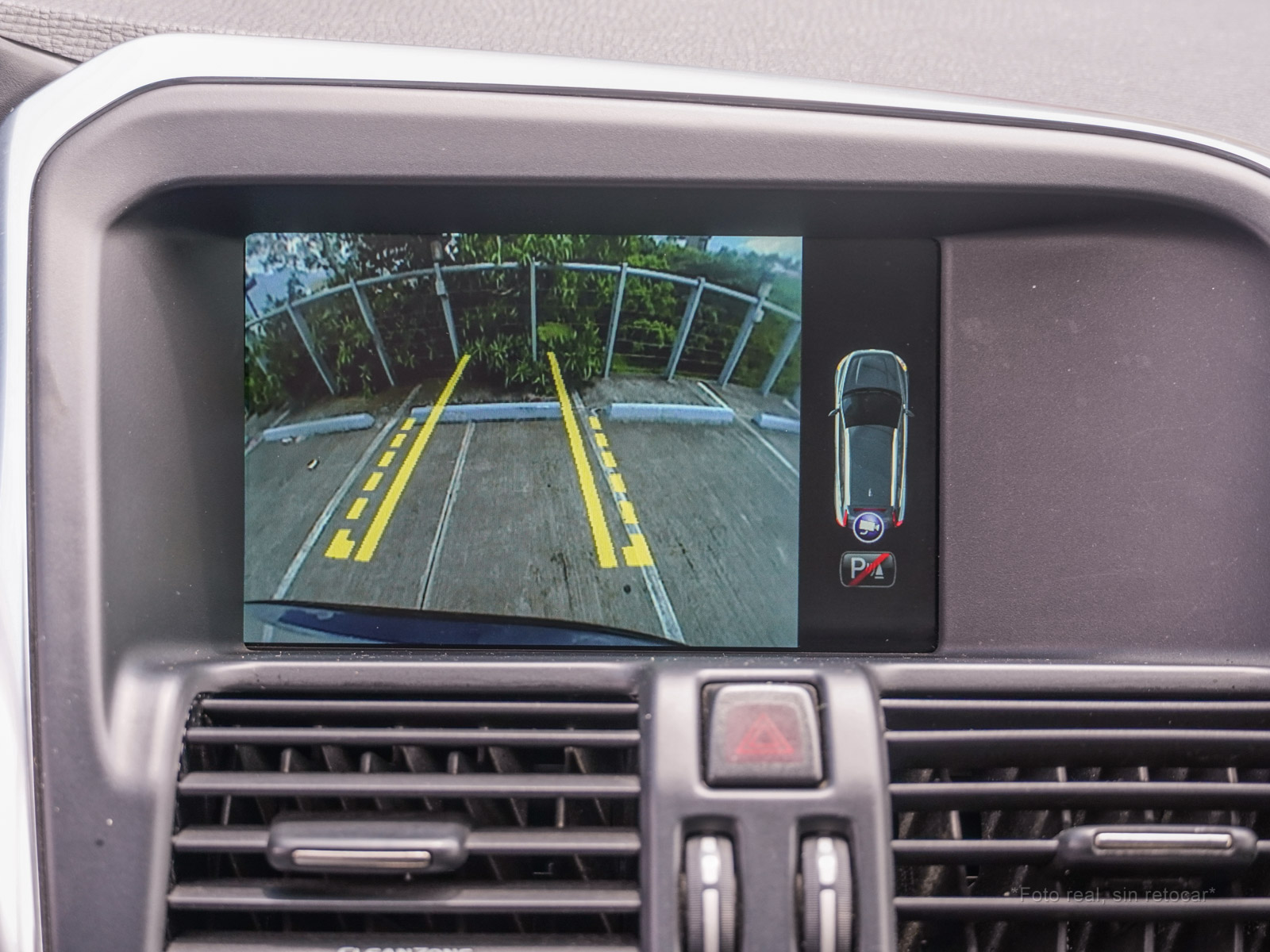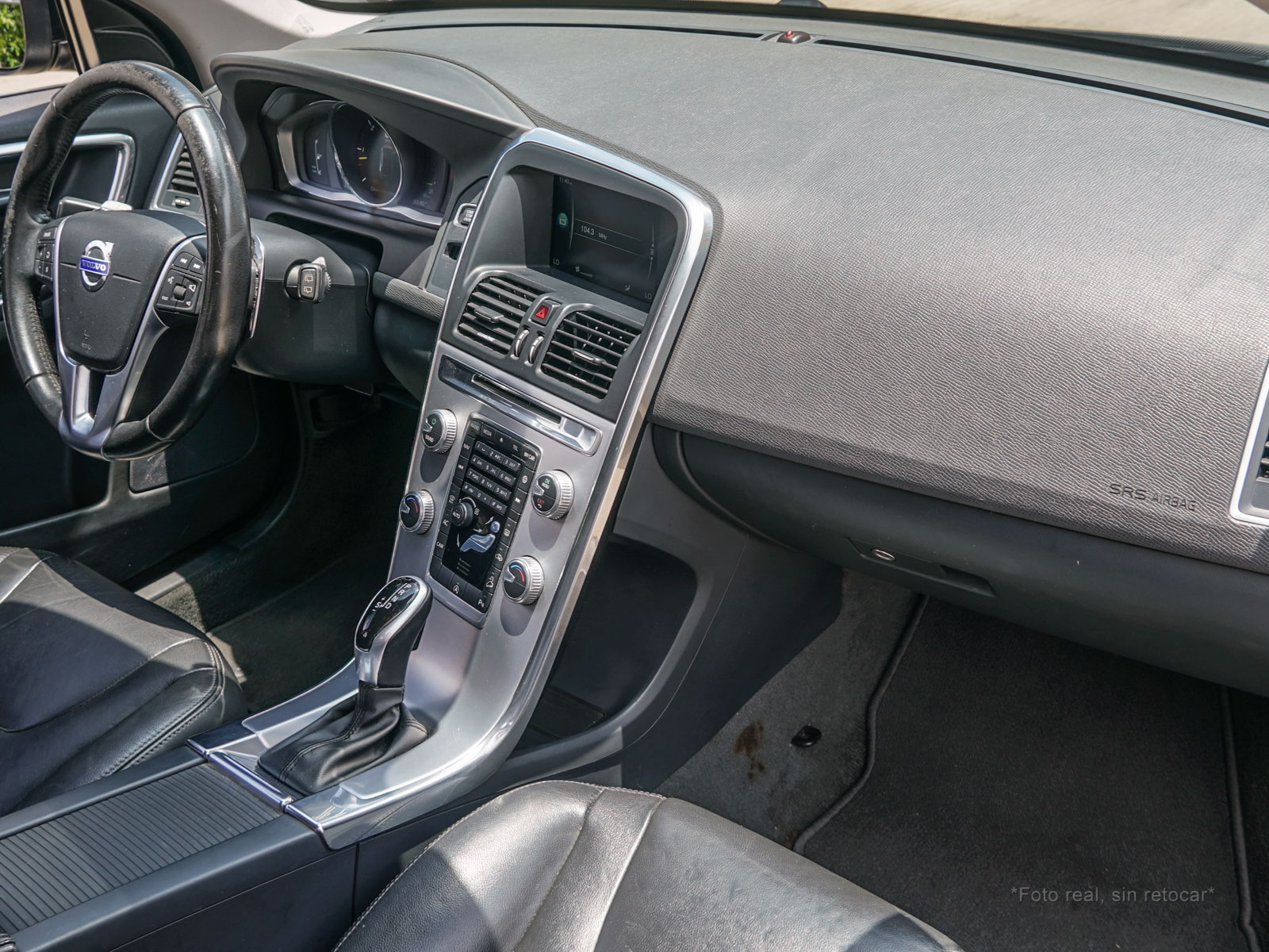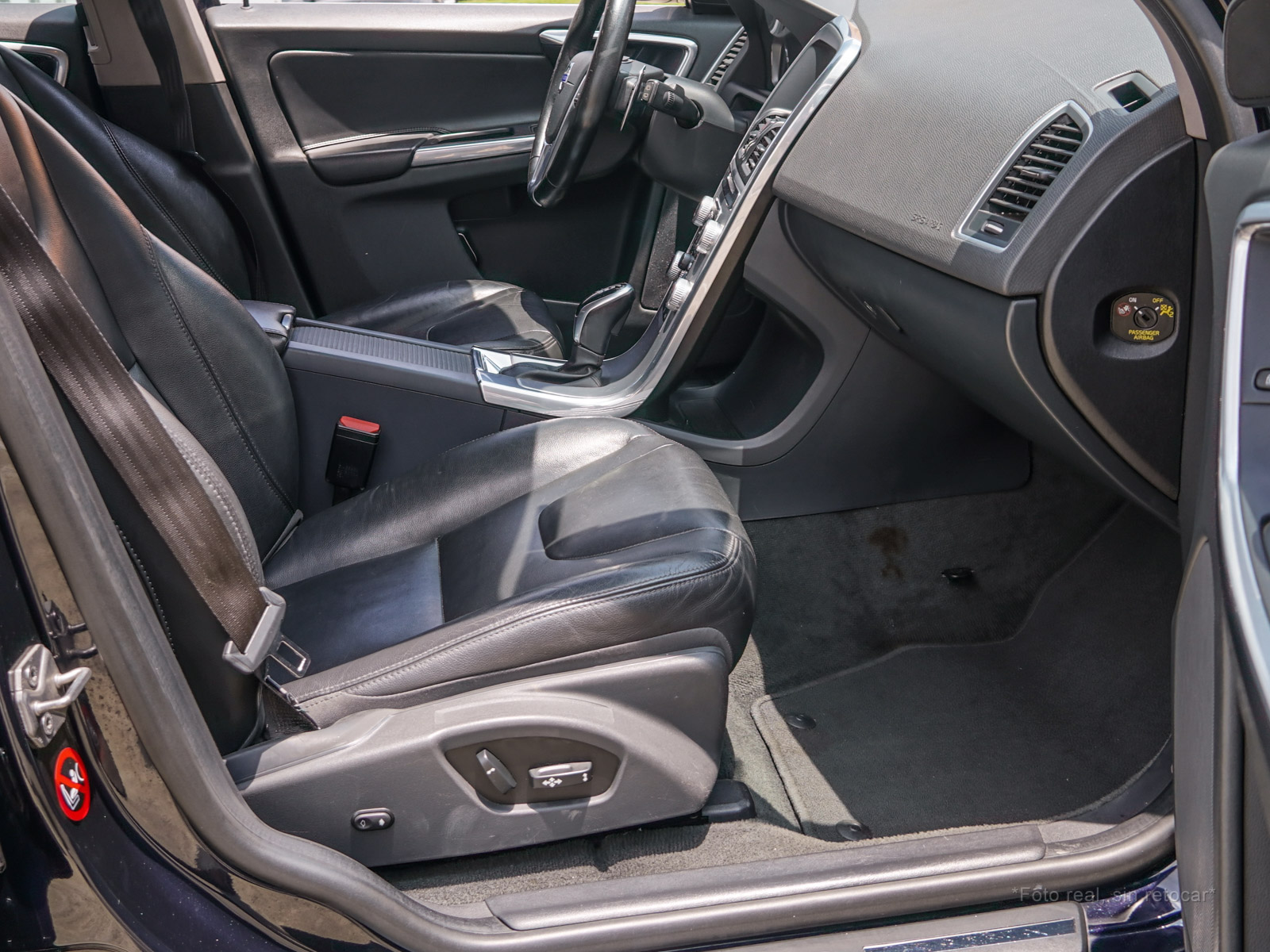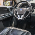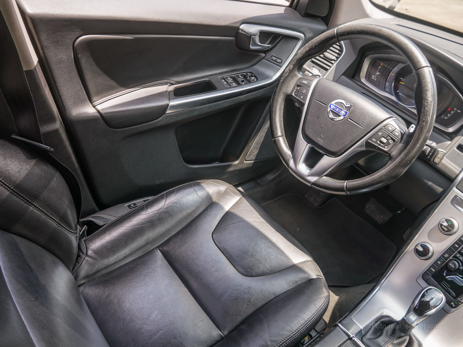 Moldura de ingreso a cabina en plástico negro con inscripción VOLVO en cromo.