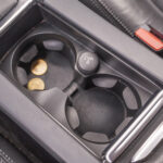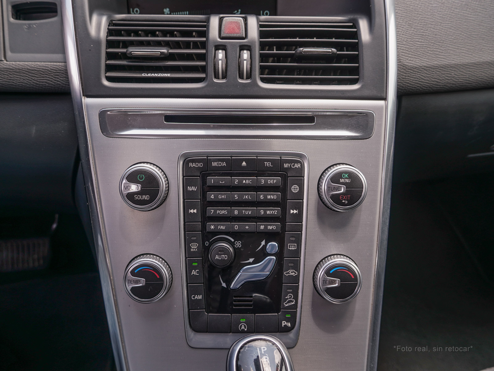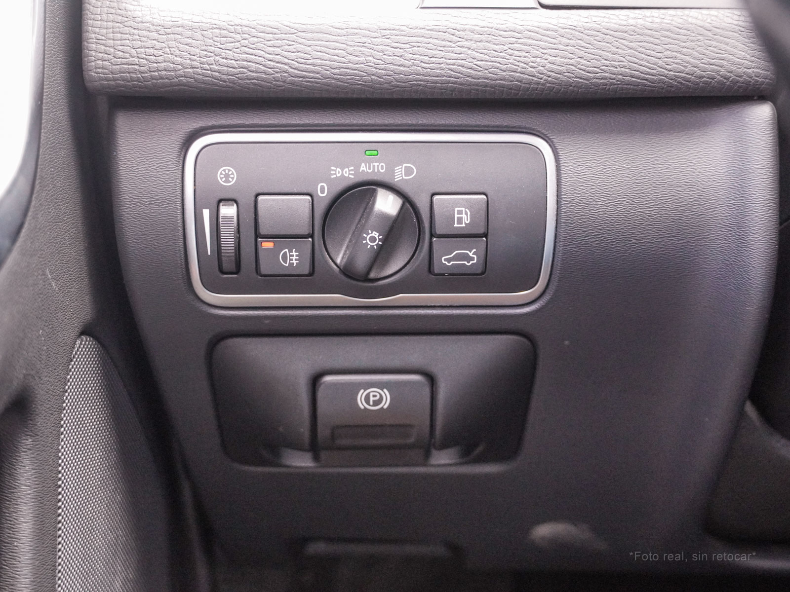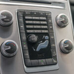 Botones de mandos interiores con decoraciones en aluminio y negro.