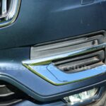 Bumper delanteros con líneas decorativas en cromo con fondo negro y otros detalles en cromo.