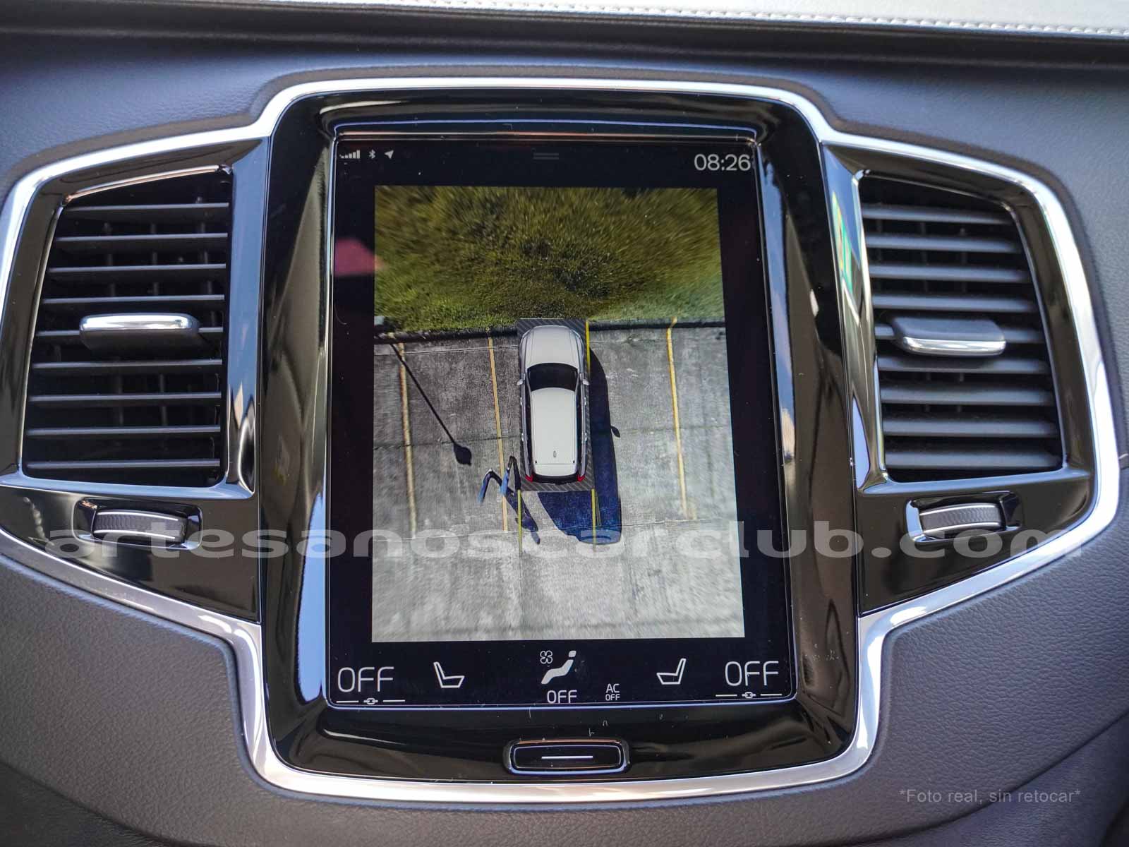 Cámara para reversa de visión de 360º con sistemas de zoom, guía de enganche de remolque y líneas de manejo.