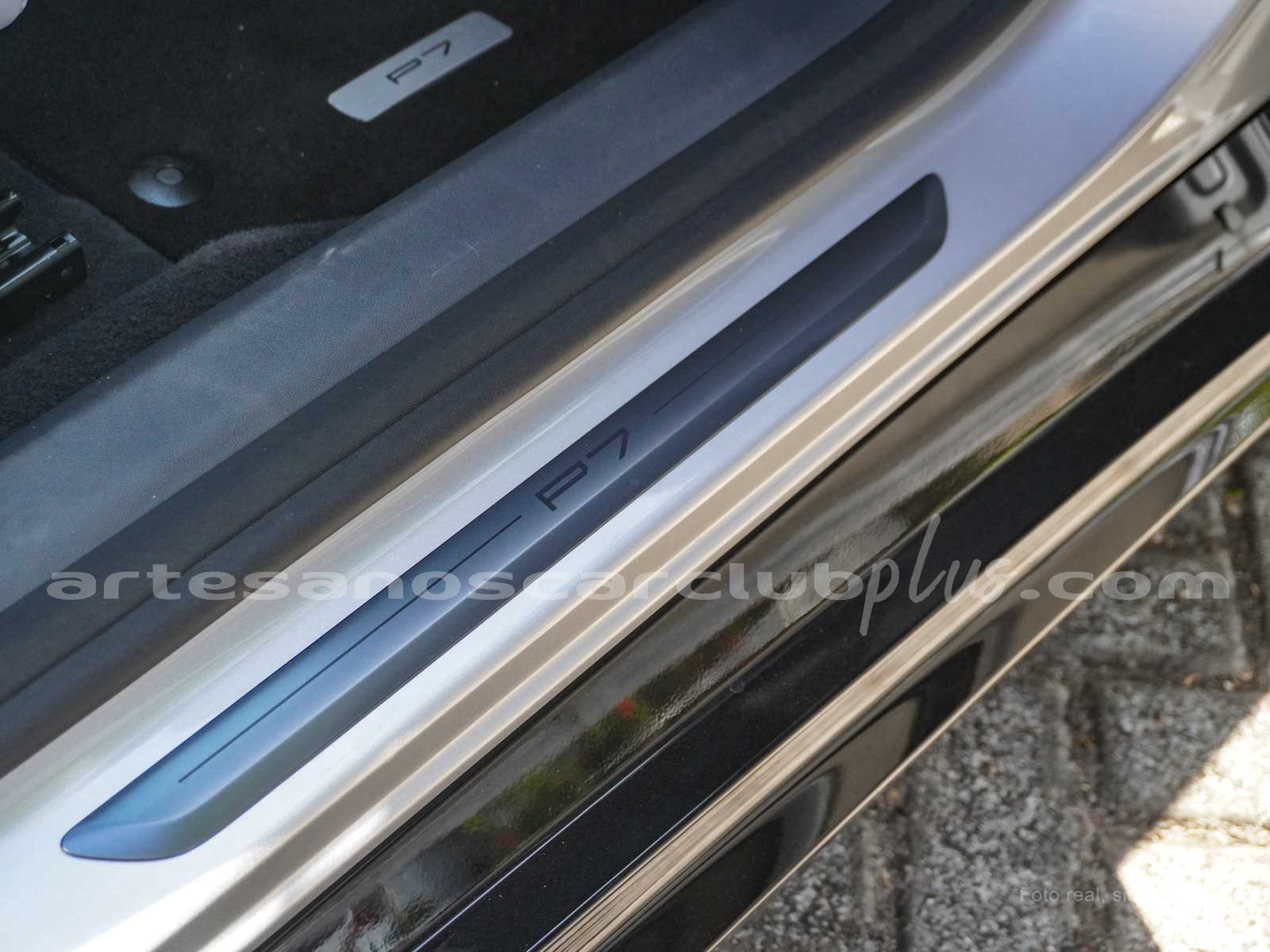 Moldura de ingreso a cabina en acero con inscripción P7.